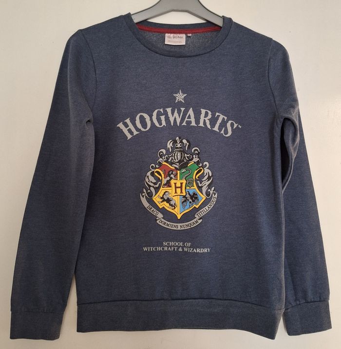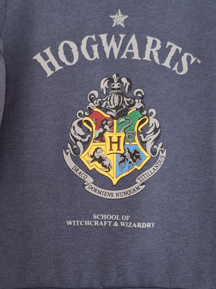 Pull gris/bleu en coton et viscose imprimé Hogwarts. Taille 36/38. Marque Cerda.