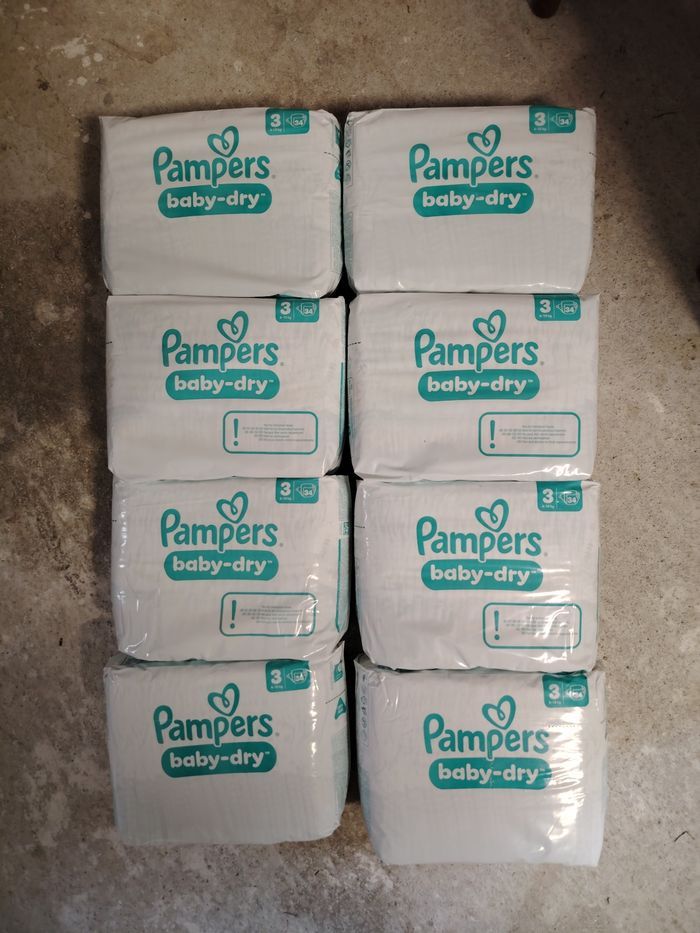 8 paquets de 34 couches pampers baby-dry en taille 3 272 couches au total