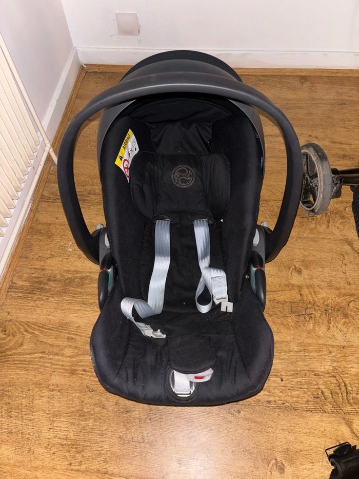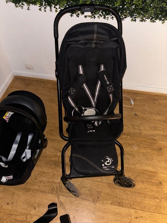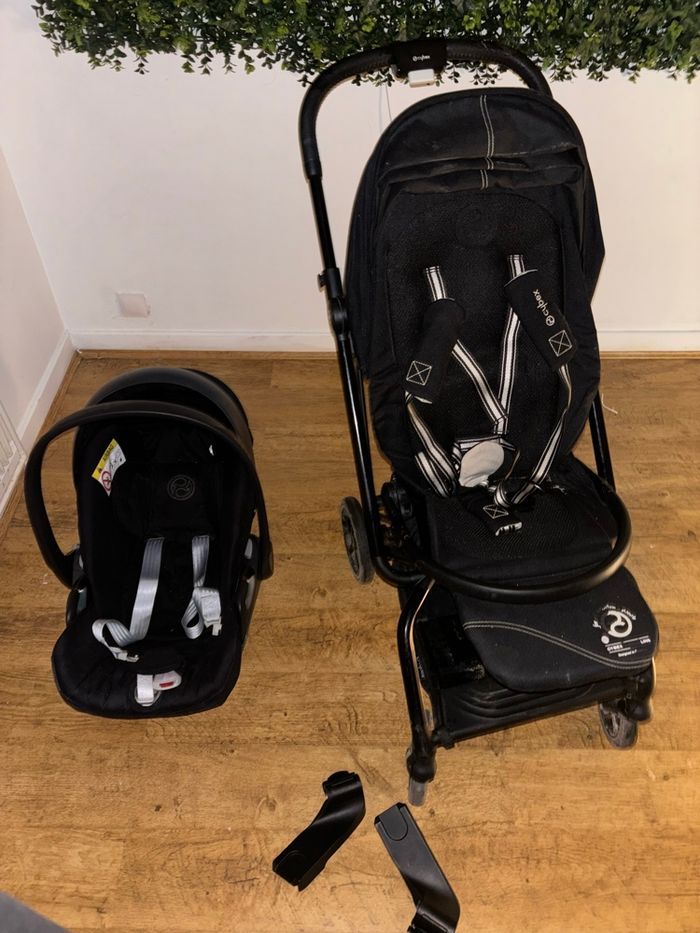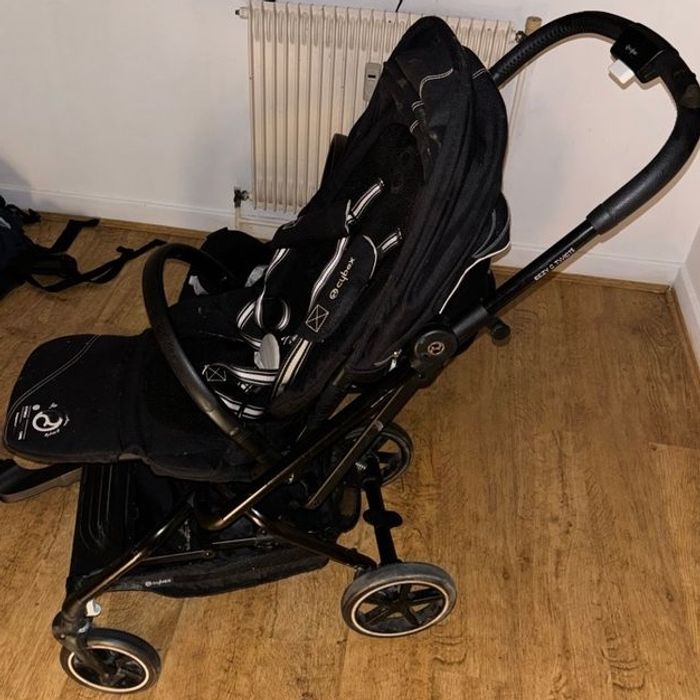 Duo poussette+cosy cybex eezy s twist 2 et cosy cloud Z2 noir. Juste trace d’usure comme montre la dernière photo ! Le cosy n a subit aucun accidents !