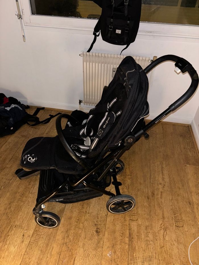 Duo poussette+cosy cybex eezy s twist 2 et cosy cloud Z2 noir et adaptateur pour fixer le cosy sur la poussette. Juste trace d’usure comme montre la dernière photo! Le cosy n a subit aucun accident !