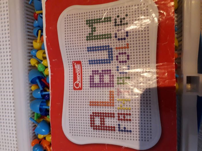 Jeu avec des picots de différentes tailles et couleurs. Super pour la dextérité et l'imagination des petits.