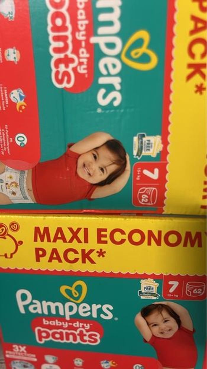 Lot de 2 cartons de 62 couches par carton, Pampers pants taille 7