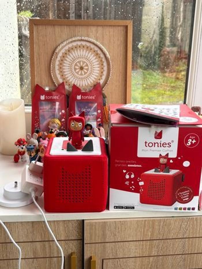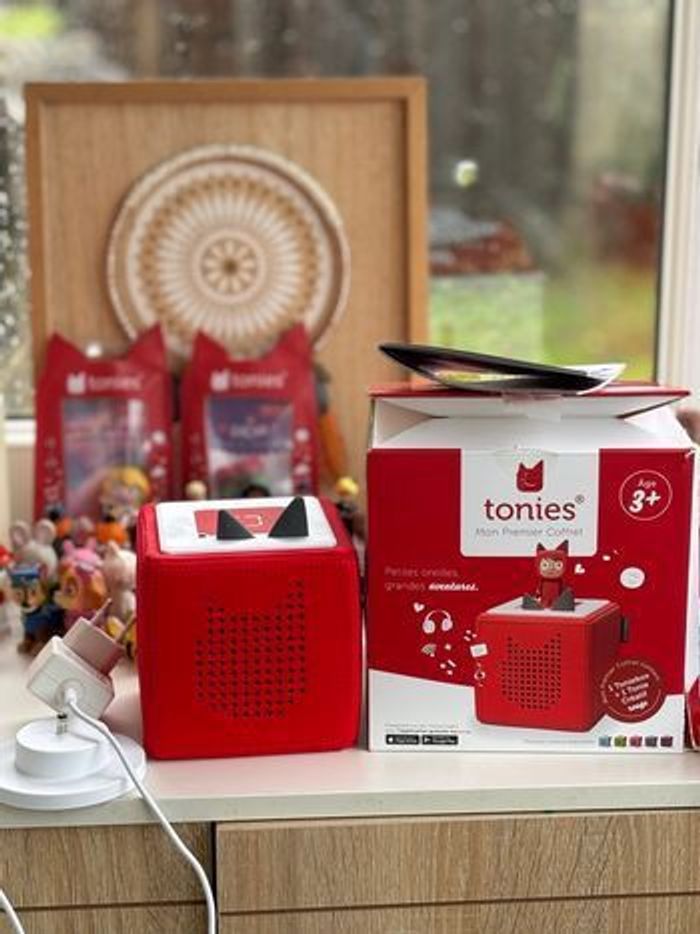 👉🏼 Tonie dans mon dressing 🍀 -15€ sur la commande avec le code CHERIE30 (passe à 70€) 🌸 Elle est en parfait état général , peu utilisée, présente cependant quelques imperfections sur le dessus liée à l’utilisation. Je n’avais pas acheté de stickers de protection et les figurines laissent des traces. 👉🏼 Vendue avec son chargeur, la boîte d’origine et ses notices. Elle a été supprimée de mon application et remise à zéro (paramètres d’usine). Le tonie créatif est inclus. 📸 Filmé en état de fonctionnement ainsi que la mise en colis et l’envoi. Possibilité d’envoyer une vidéo pour prouver le bon fonctionnement, avant votre achat.
