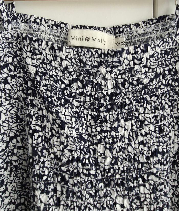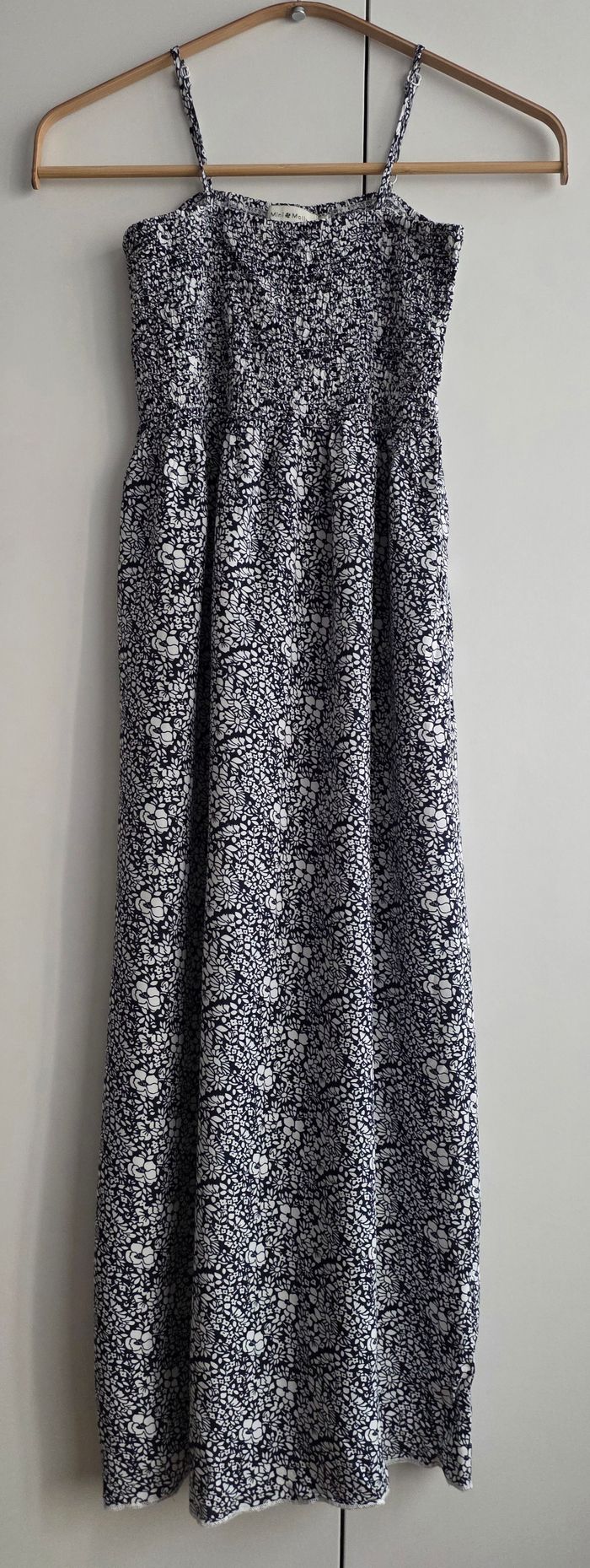 Robe longue de marque Mini Molly, fines bretelles réglables, taille 10/12 ans. Couleur bleu foncé / blanc.