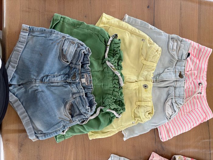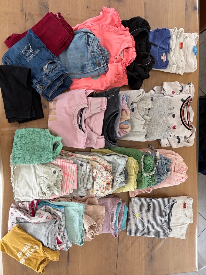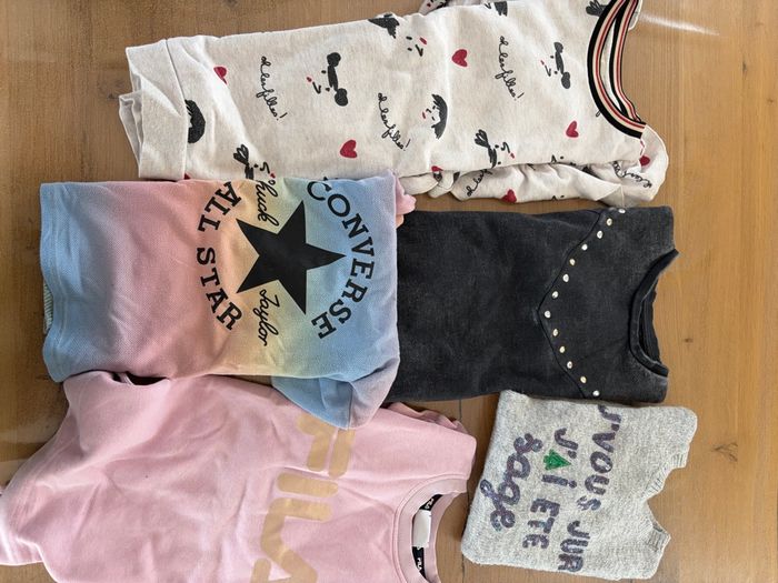 Lot de 29 vêtements fille 👧 8 ans qui comprend: - 3 pyjamas (2 longs, 1 court + hauts) - 2 t-shirt ML (tape à l’œil/okaidi) - 5 t-shirt MC ( kiabi, Disney, tape à l’œil, gémo, spam) - 1 robe tape à l’œil - 1 combi short minotti - 2 pantalons (kiabi tape à l’œil) - 1 legging kiabi - 1 jupe tape à l’œil - 1 maillot de bain décathlon - 1 gilet okaidi - 1 pull - 4 sweat (catimini fila converse kiabi) - 9 shorts (4 en 7 ans tape à l’œil qui taille très grand, 2 okaidi 2 vertbaudet 1 tape a l’œil) Certains Articles peuvent avoir des défauts (taches) mais les 3/4 ont été peu porté.