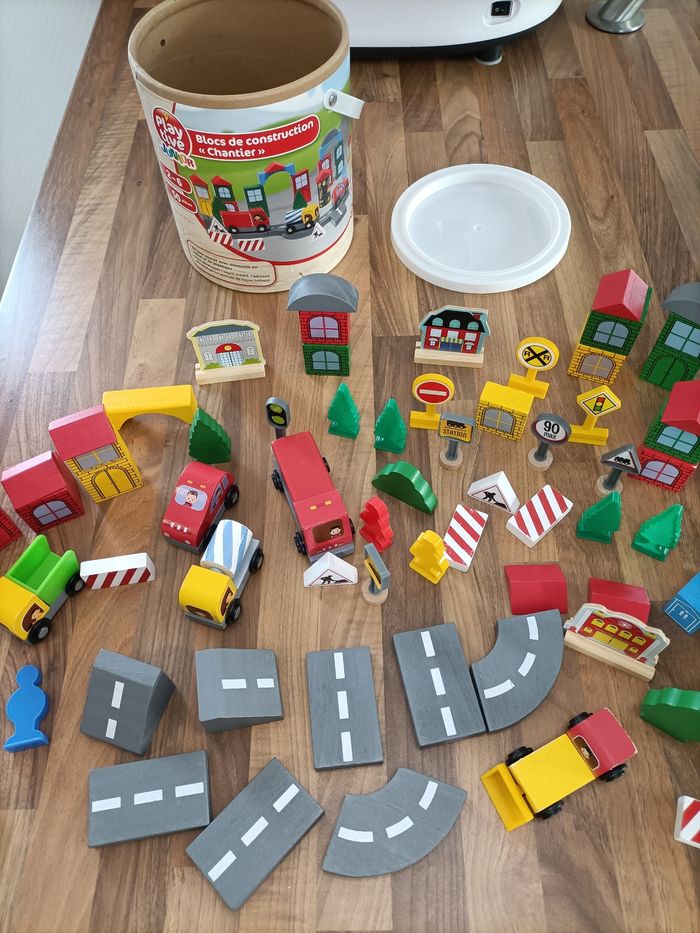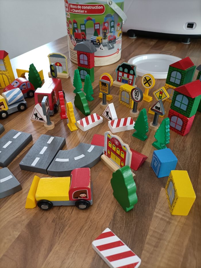 Blocs de construction bois avec véhicule, arbre, maison, etc - photo numéro 3