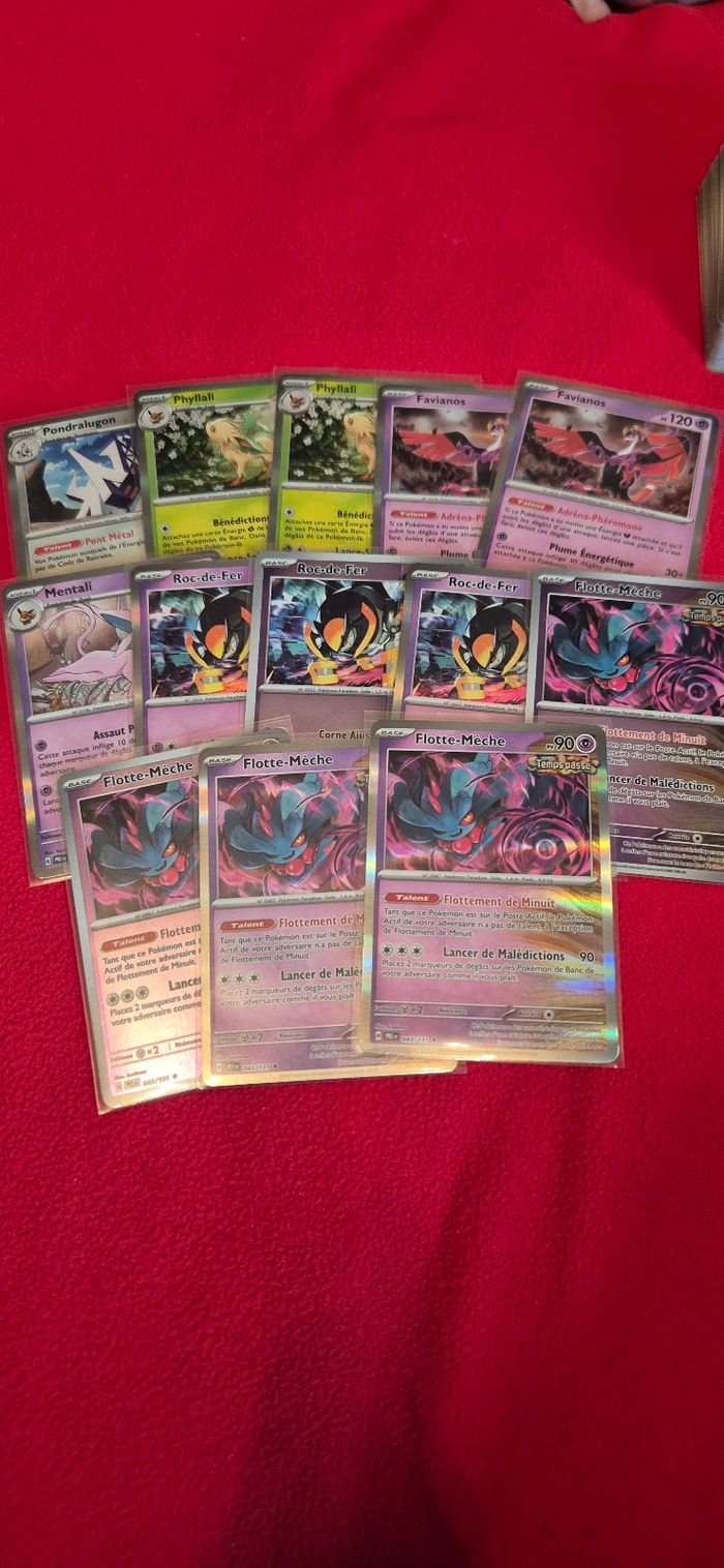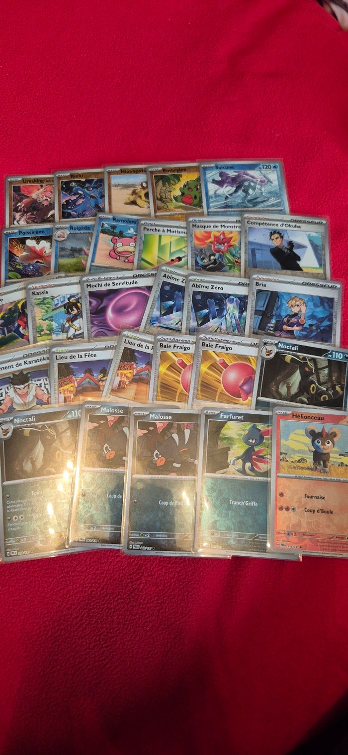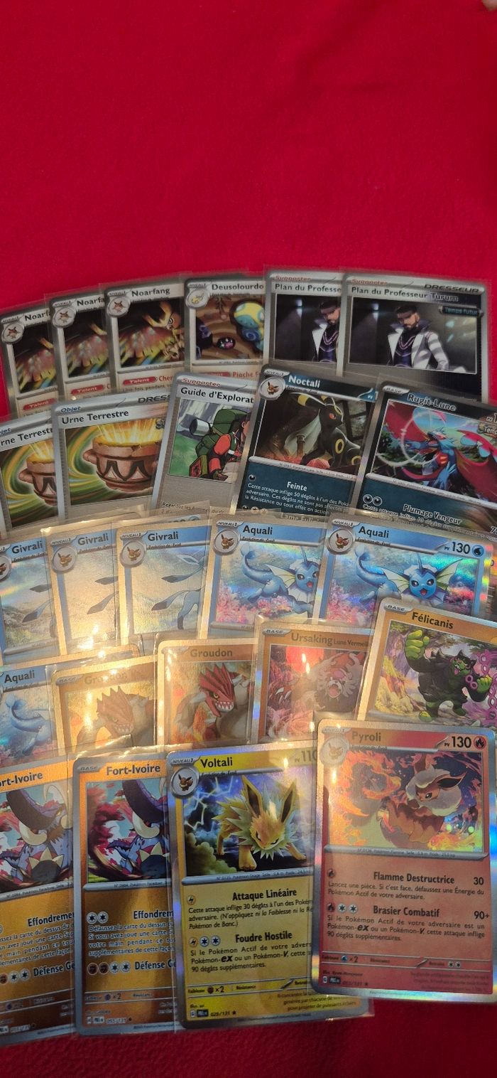 Bonjour, Évolutions prismatiques ev8.5 Pokémon Lot composé : d'un peu plus de 50 reverse 38 Holo Et de plus de 250 cartes communes energie dont certaines foil Dans les cartes certaines sont en plusieurs exemplaires + cartes live Envoyé dans des boîtes bundles. N'hésitez pas de profiter des offres régulières de 30% !! Colis soigné Mots clés : Carte Cartes Pokémon Pokemon booster boosters display bundle tin tins etb blister coffrets coffrets pokeball tripack case premium ultra super rare secret shiny alternative alt fa full art rainbow gold holo star prime ex bgs ccc Pikachu Dracaufeu Rayquaza Ectoplasma Noctali Mentali Evoli Team Rocket Lugia protège carte sleeves sleeve toploaders toploader one touch acryligue binder classeur portfolio Noctamon Noctamonteg shop size box transparent ultra double clear dur rigide hard dure pro premium quality plastique protège slive card cards sliv pro penny sleeves dix mille cents slivs standard ten dix