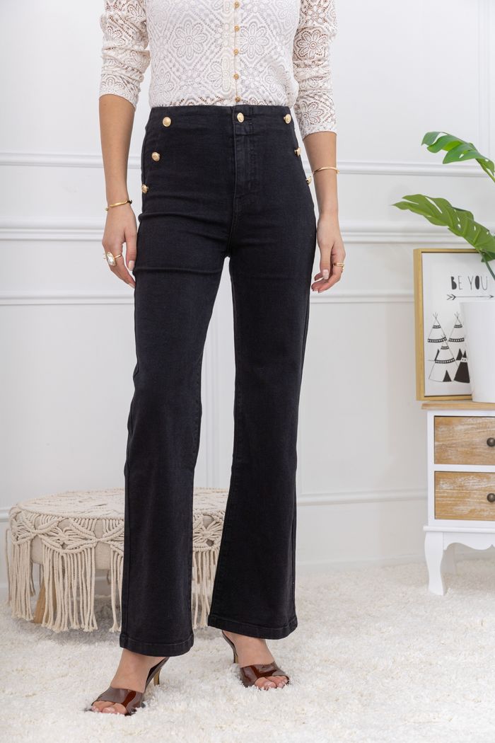 Jeans wide leg noir boutons dorée  - photo numéro 1