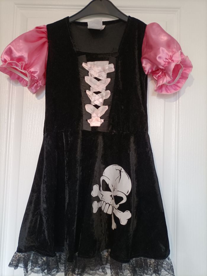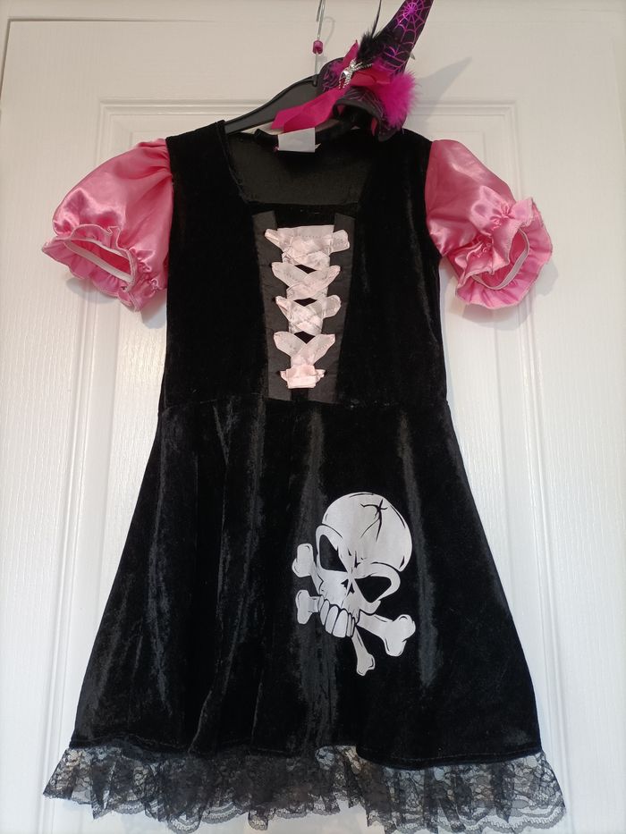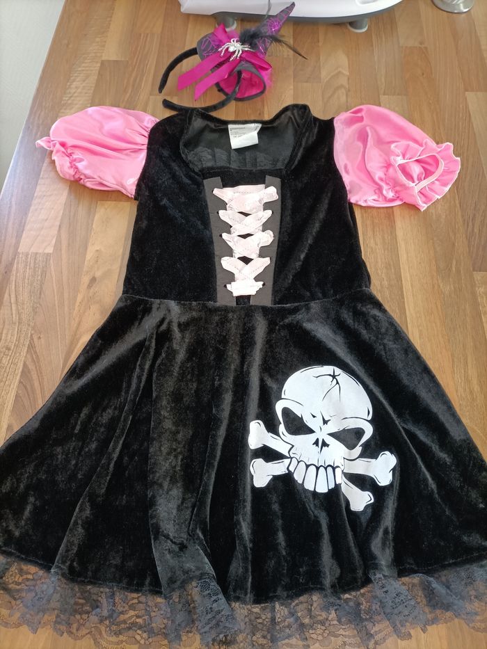 Déguisement sorcière pirate crâne halloween noir et rose 7-10 ans avec serre tête