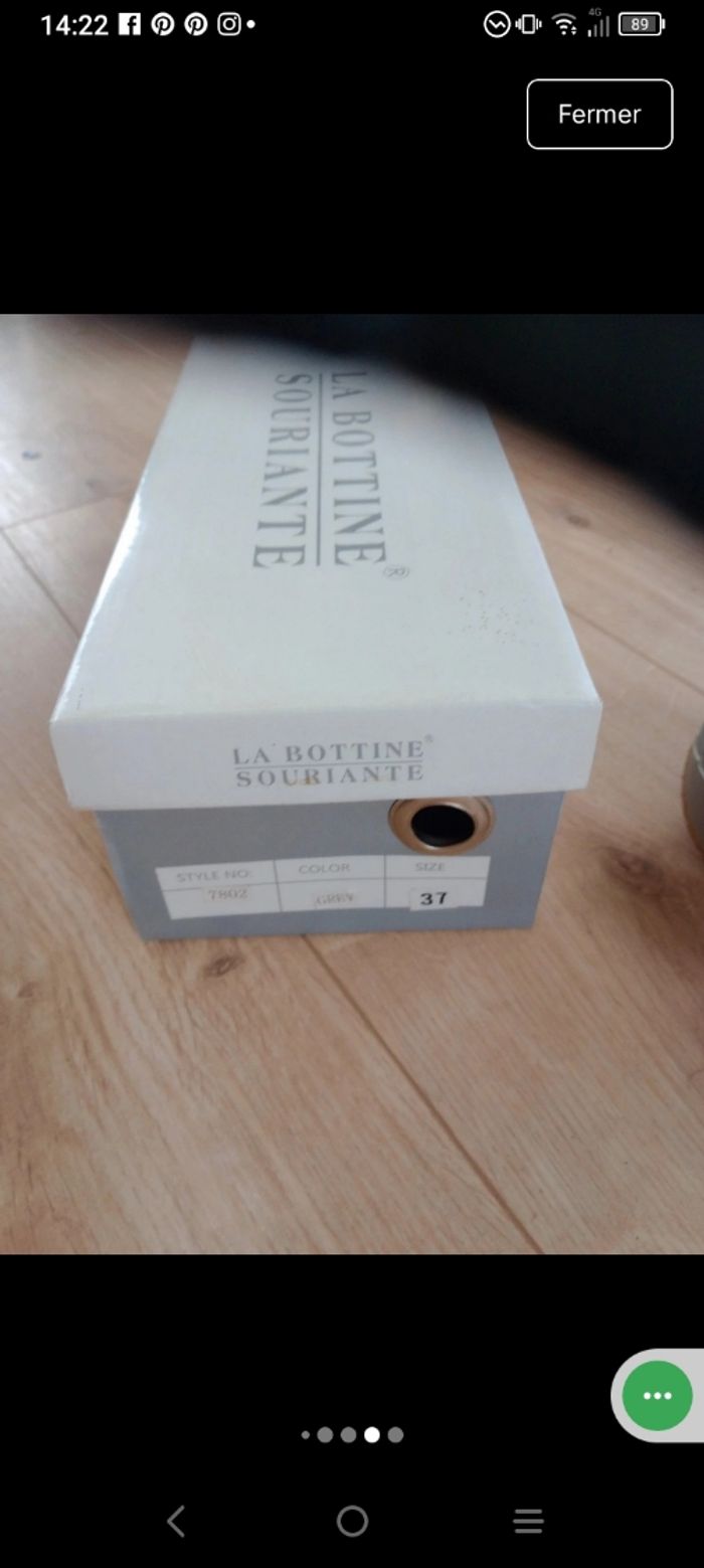 Paire de sandales pour femme de la marque La Bottine Souriante, vendues avec leur boîte d'origine. ​Marque : La Bottine Souriante ​Pointure : 37 ​Couleur : Gris / Taupe (indiqué "Grey" sur la boîte) ​Style : Confort / Casual ​Fermeture : Brides réglables par scratch (velcro) sur le dessus et à la cheville pour un ajustement parfait. ​Détails : Semelles compensées légères avec surpiqûres blanches contrastantes. Semelle extérieure antidérapante. ​État : Neuves, jamais portées (voir photos de la semelle intacte). ​Parfaites pour un usage quotidien, offrent un excellent maintien du pied tout en restant légères. ​Hashtags #calomomi_chaussures37 ​#LaBottineSouriante #Sandales37 #SandalesConfort #ChaussuresFemme37 #SandalesGrises #Ete2026 #ChaussuresNeuves #ComfortShoes #SandalesScratch