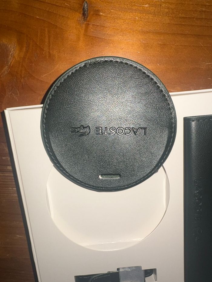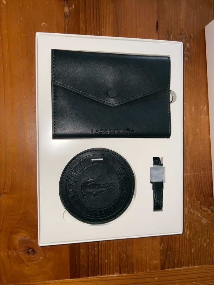 Set de voyage Lacoste vert bouteille Un porte passeport Un cache étiquette valise et attache