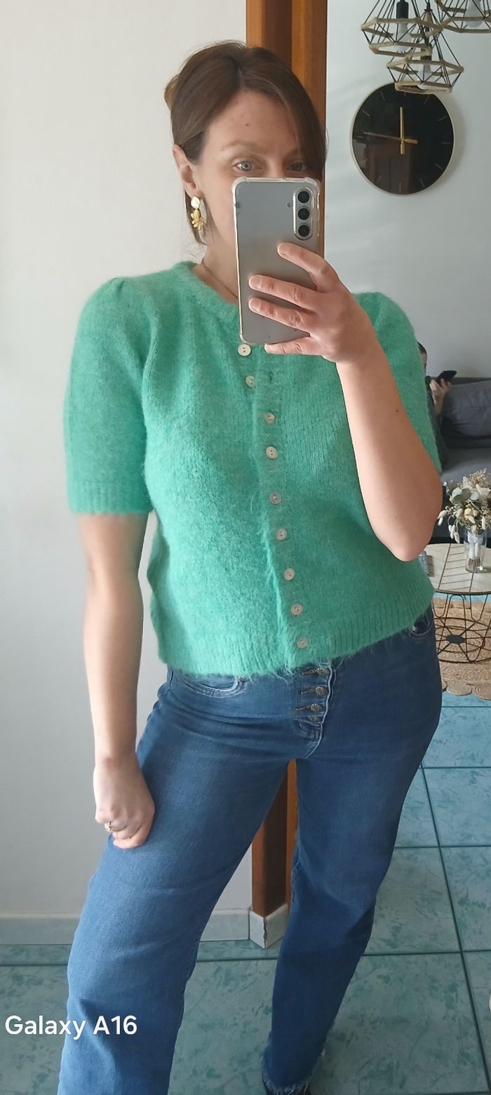 Magnifique gilet vert menthe avec ses manches courtes Taille unique 36 au 40