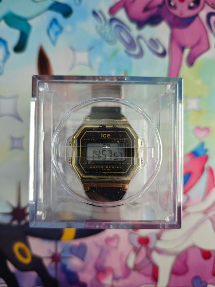Ice watch digit retro black gold small Pas de boîte carton ice Watch d'origine ni de garantie il y a seulement la boîte en plastique et la montre Pour plus d'informations contactez moi 😄 Envoie rapide 24h 48h Protégé