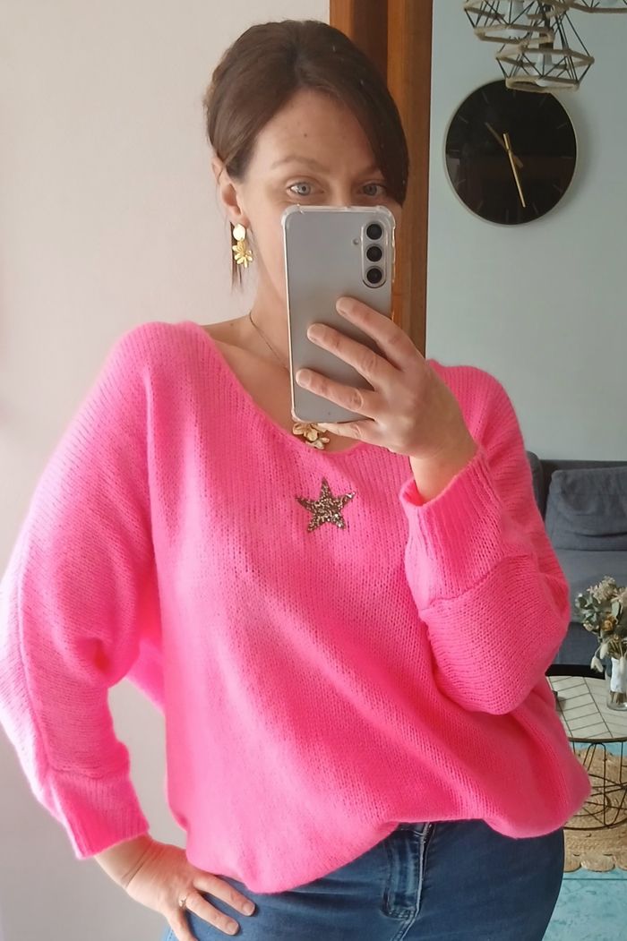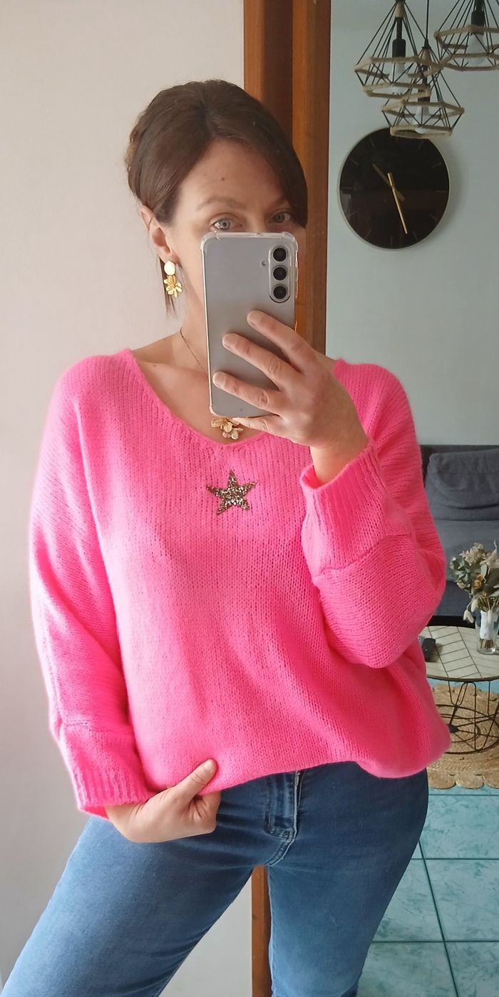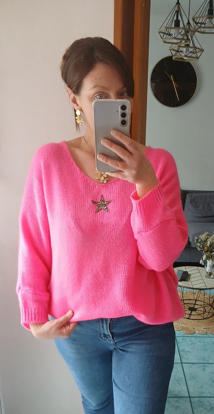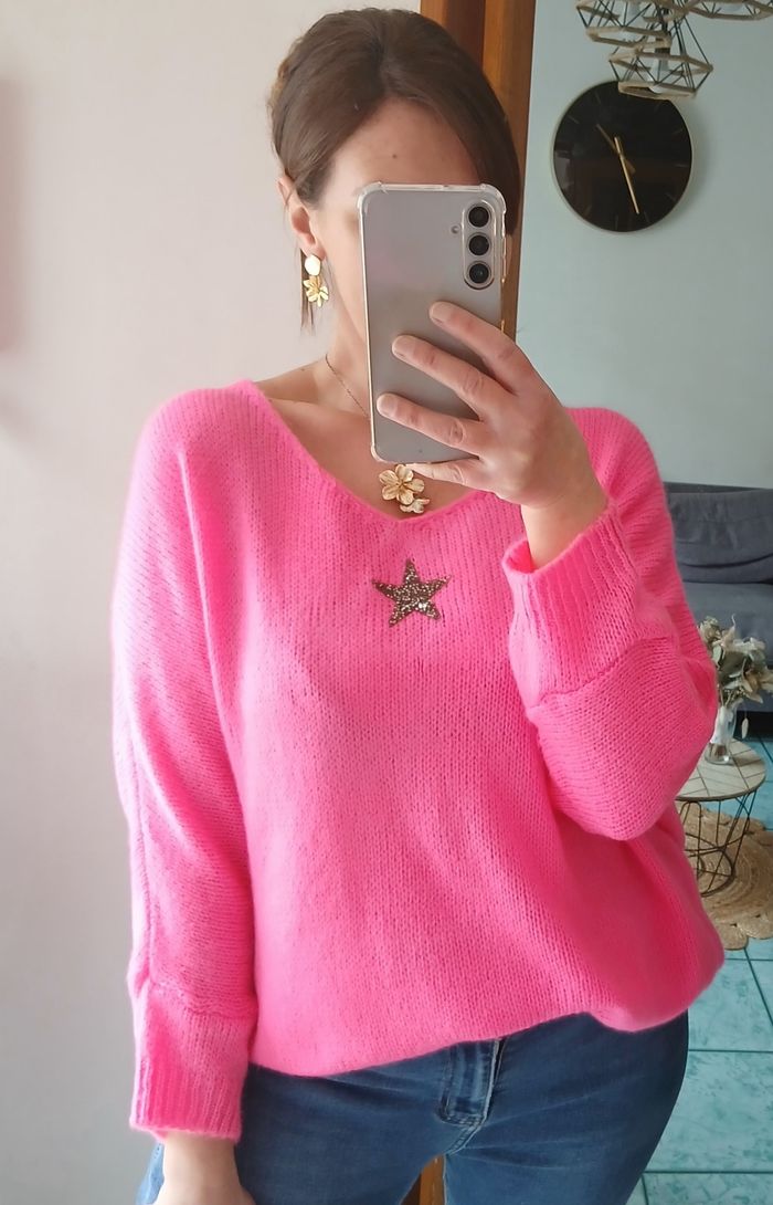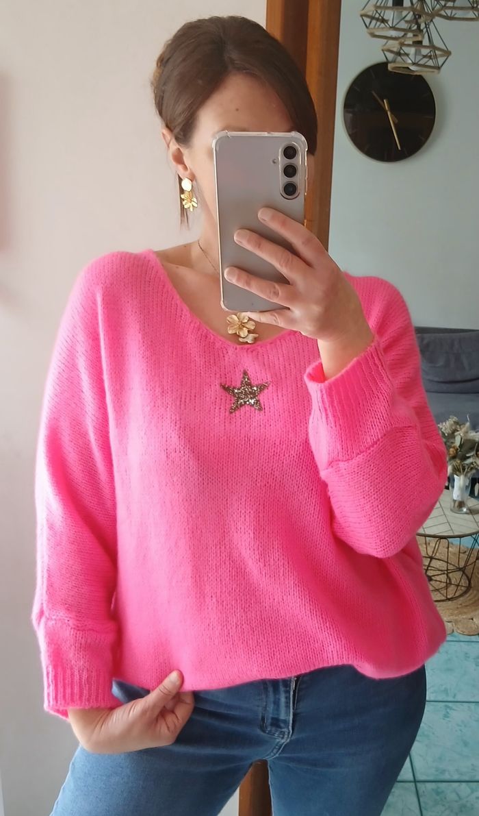 Magnifique pull fushia avec son étoile sur le devant Taille unique du 42 au 48