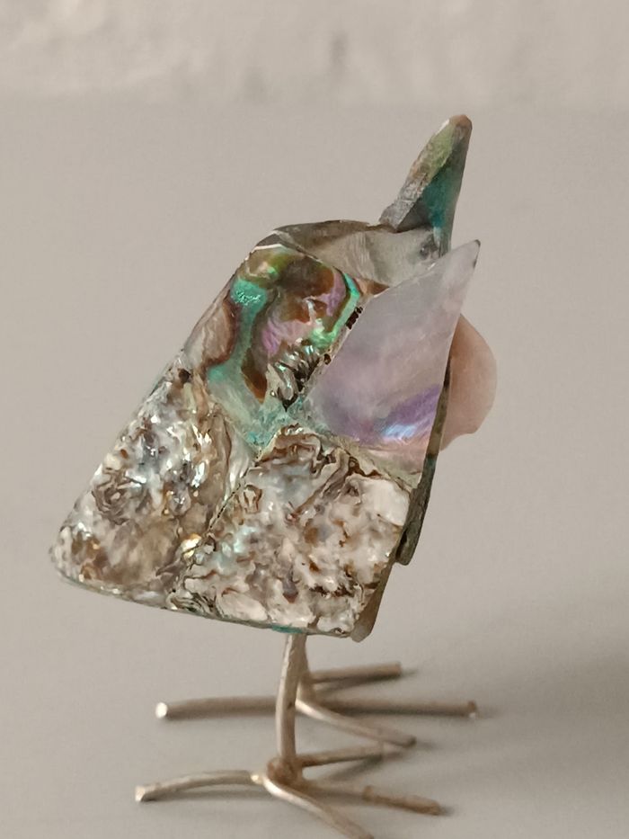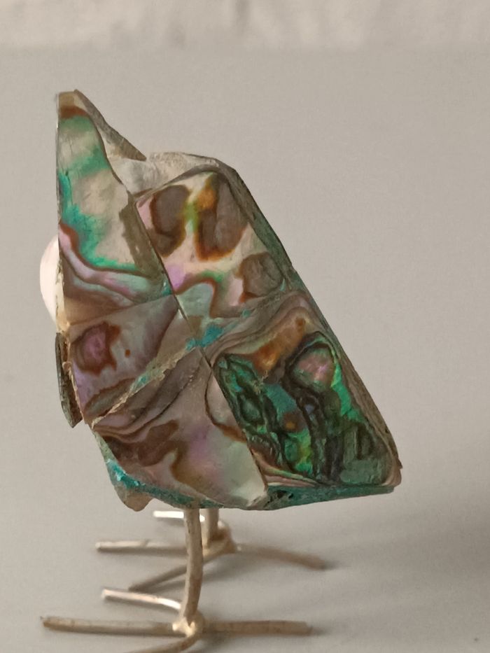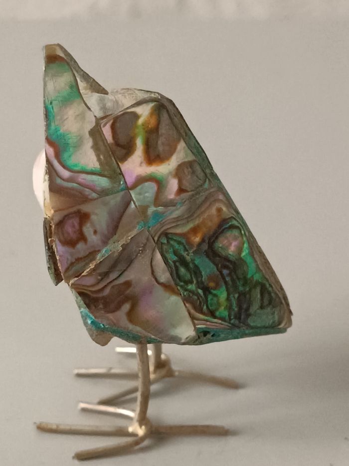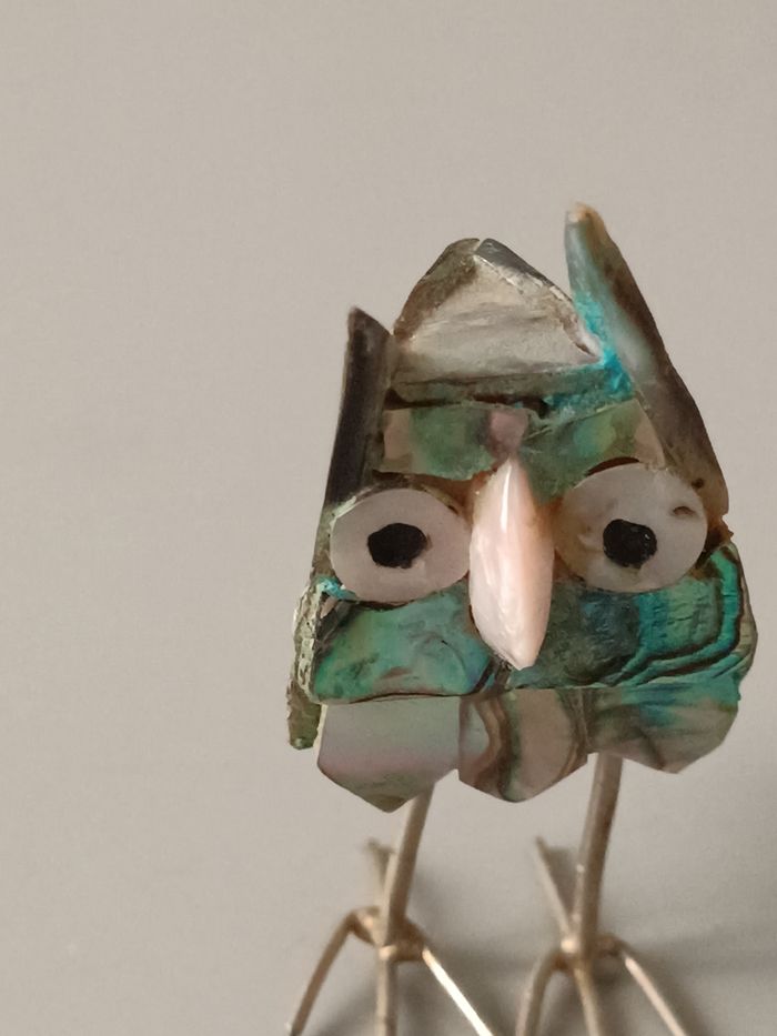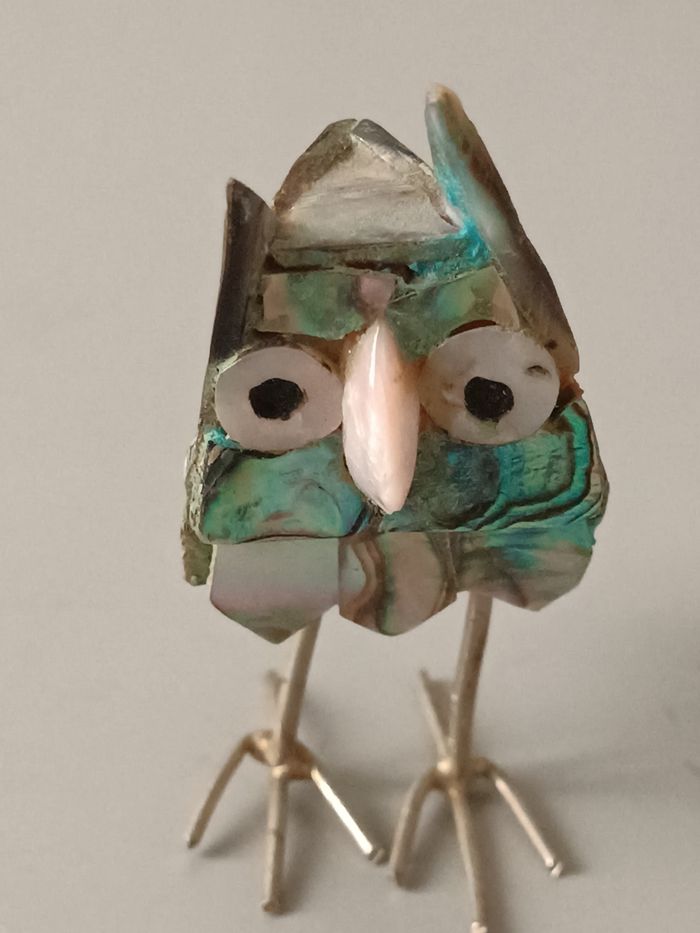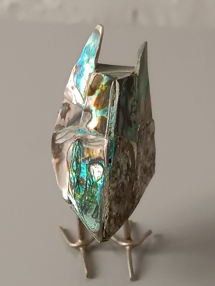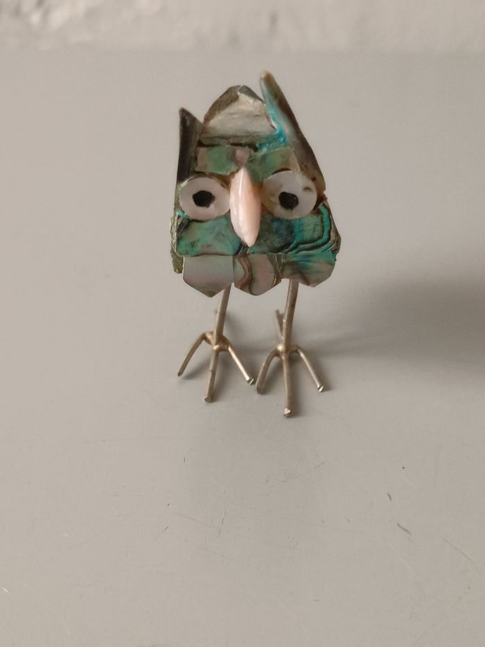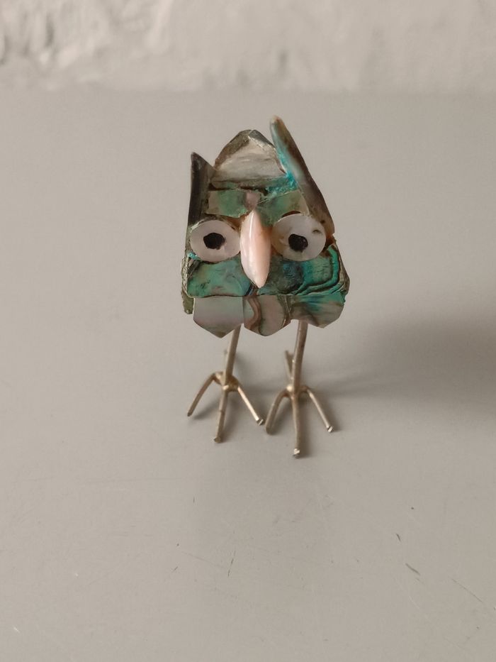 Chouette métal et abalone 6 cm bon état cf photos