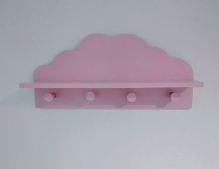 Étagère murale porte manteau nuage en bois Couleur rose Bon état