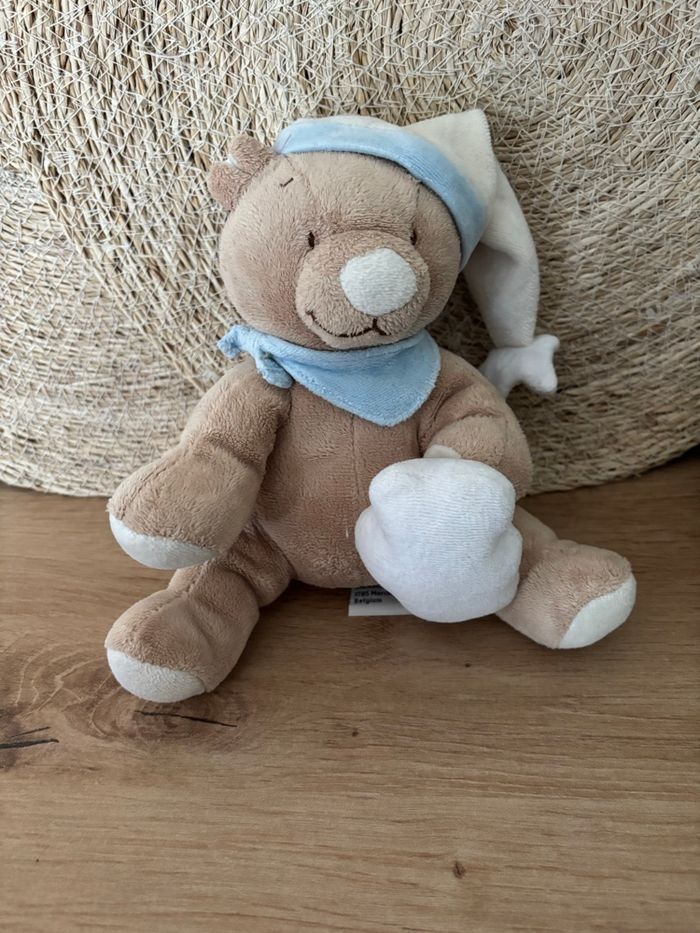 Doudou ours beige bleu musical noukies noukie ´s  - photo numéro 1
