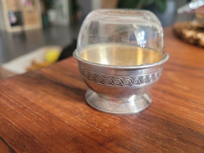 Ancien beurrier en verre et métal – belle pièce ancienne - photo numéro 1