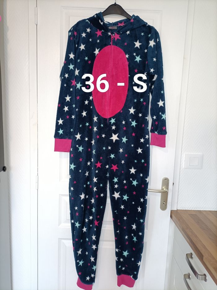 Pyjama pilou pilou S tout doux bleu marine étoiles roses et blanches - photo numéro 6