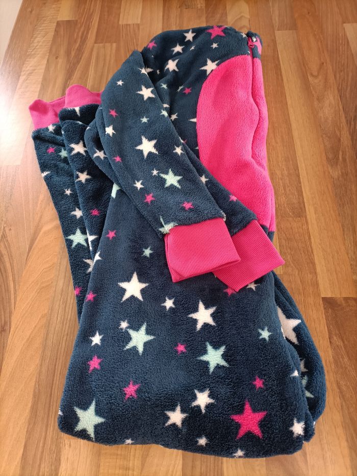 Pyjama pilou pilou S tout doux bleu marine étoiles roses et blanches - photo numéro 1