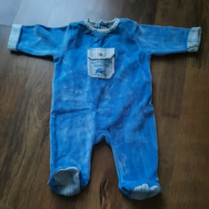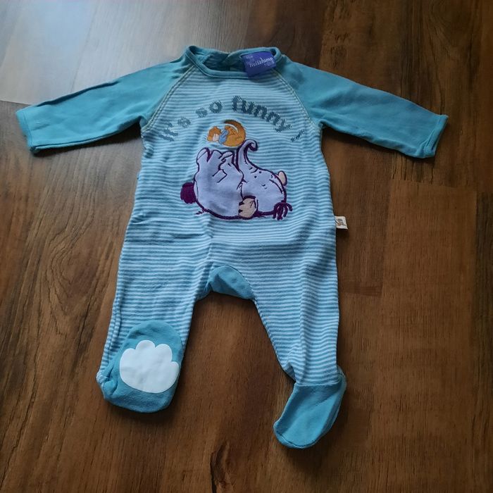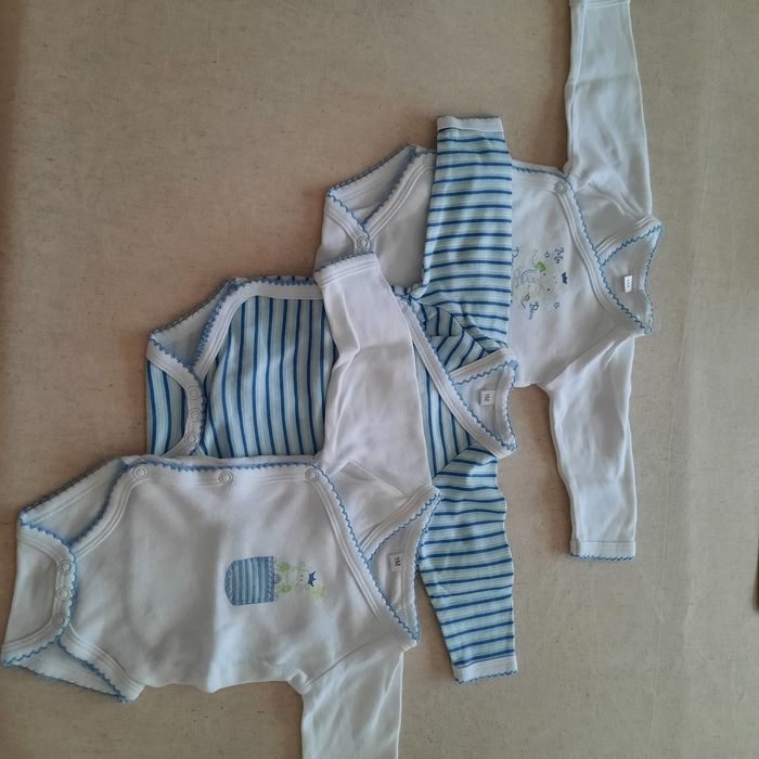 Lot de vêtements bébé garçon - un manteau-gilet bleu clair, naissance - un bonnet, naissance - 3 bodies, 1 mois - un pyjama "Winnie l'ourson", 1 mois - un pyjama bleu, 1 mois Très bon état