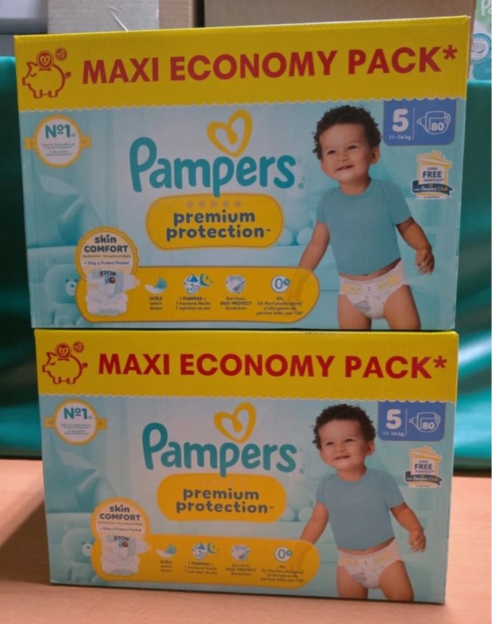 2 cartons de couches Pampers premium taille 5