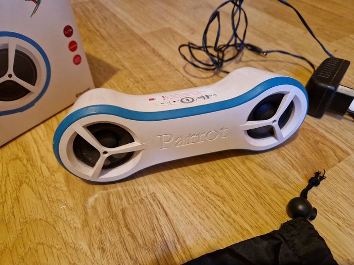 Enceinte sans fil Parrot en très bon état. Avec boîte (abîmée) et tous ses accessoires.