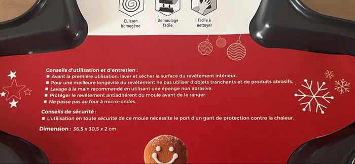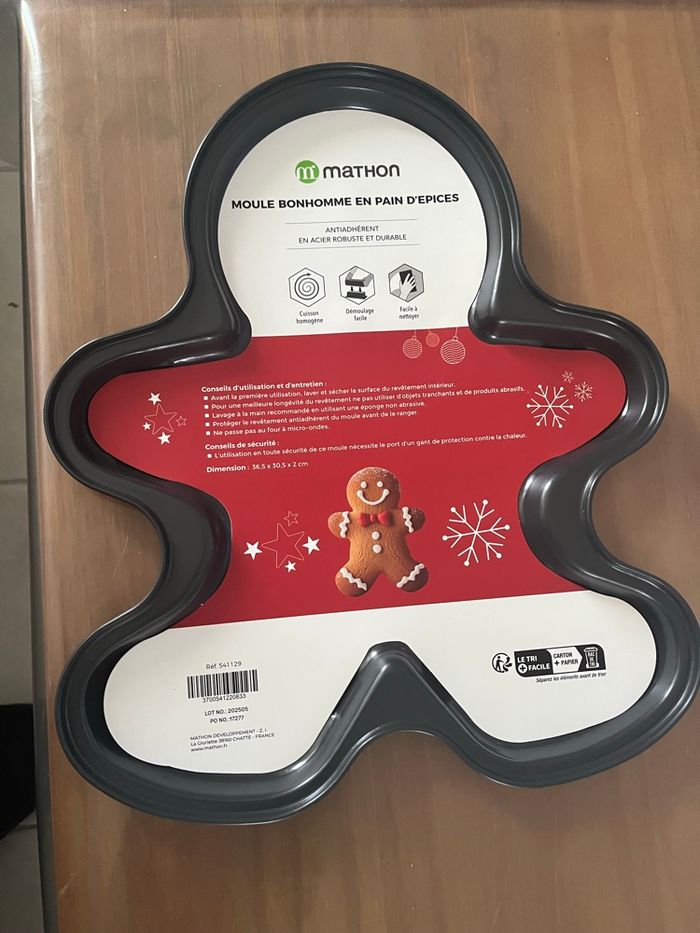 Neuf, jamais servi. Moule bonhomme en pain d’épices. Dimensions : 36,5 * 30,5 * 2 cm Voir conseils d’utilisation et d’entretien sur les photos.