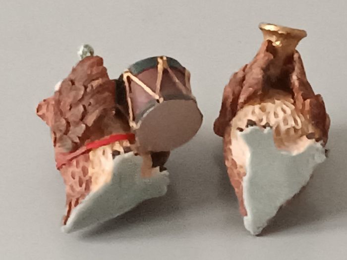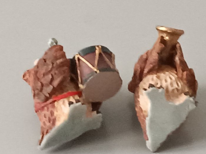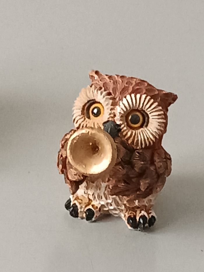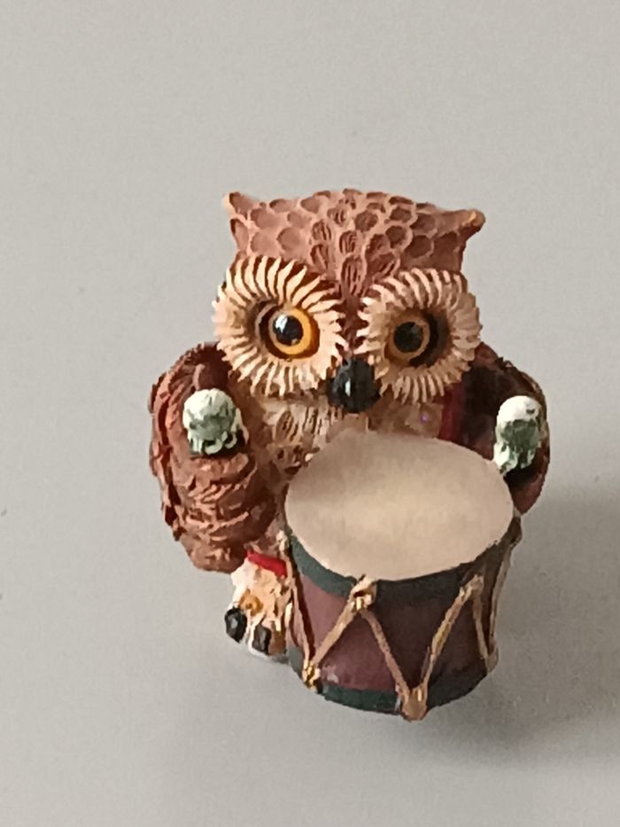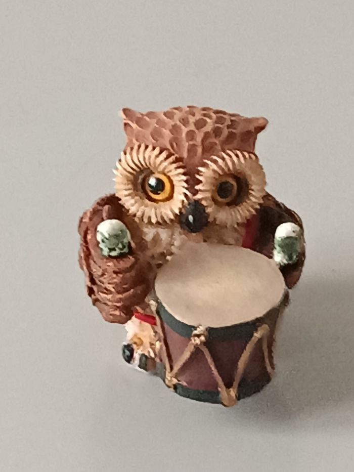 Chouettes hiboux musiciens en résine 5 cm bon état cf photos