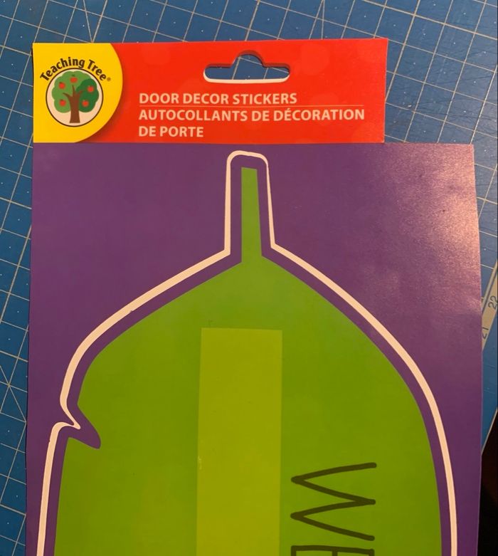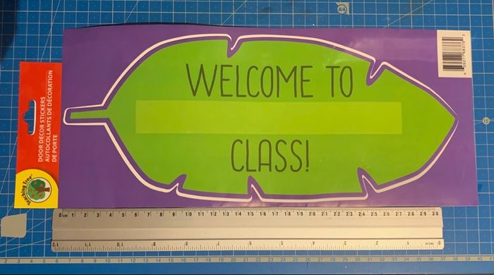 Sticker pour placer ou coller sur la porte de classe, forme de feuille, couleur vert En anglais "welcome to ... class !" Dimensions : 32,5 x 13,5cm *petit choc sur un côté à peine perceptible, regarder les photos ⛔️ Prix FIXES, NON négociables 🚨  👏🏻 Réductions sur les lots 👍🏻 #stickerporte #classe #anglais #loisirscréatifs #autocollant