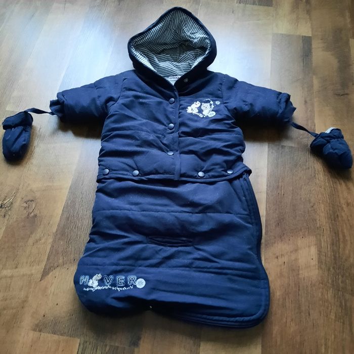 -un manteau - combinaison bleu pour bébé garçon dès la naissance (taille unique), marque Aubisou - un gilet marron clair pour garçon 18 mois, "Bamby", marque Disney Très bon état