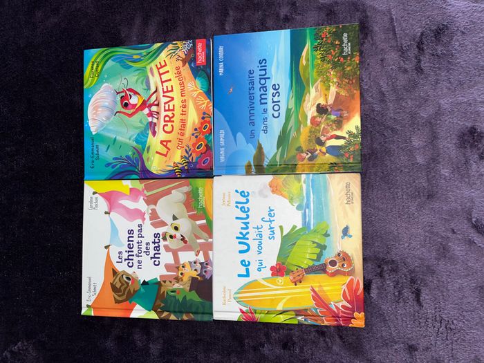 Je vends le lot qui comprend 4 livres : - Les chiens ne font pas des chats - collection "Il était un dicton" - La crevette qui état très musclée - collection "Contes d'animaux étonnants" - Le Ukulélé qui voulait surfer - collection "En avant la Musique" - Un anniversaire dans le maquis corse - collection "Merveilles de France" Edition Hachette Jeunesse. En très bon état. #hachettejeunesse #diversecollectionle #livremcdonald