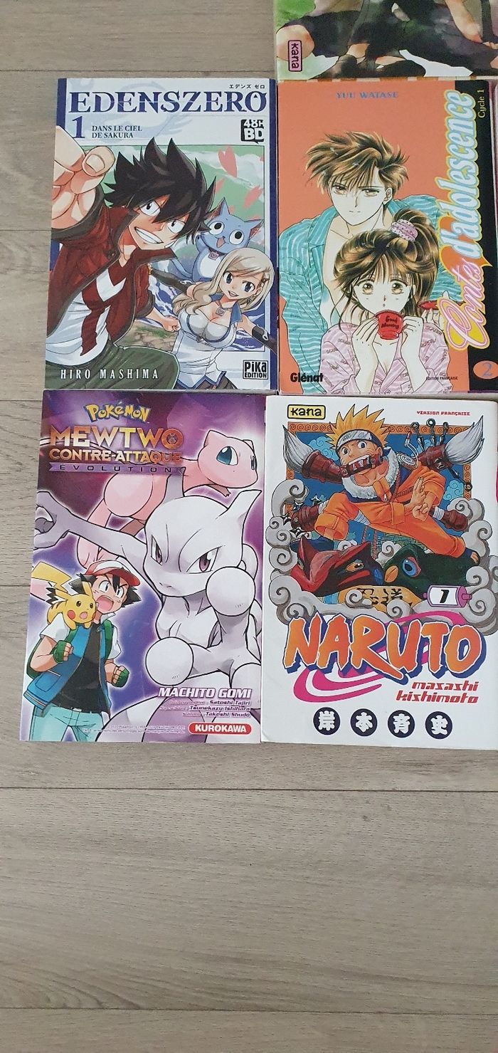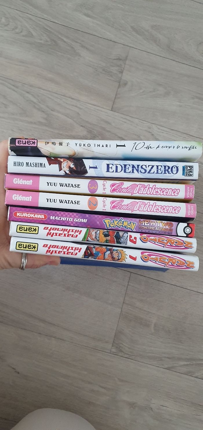 Je vends ce lot de 7 mangas variés, neufs ou en très bon état. Pokemon, Naruto, Contes d'adolescence, Edensezero, 10 th à couper le souffle. Possibilité de séparer le lot, 2€ l'un.