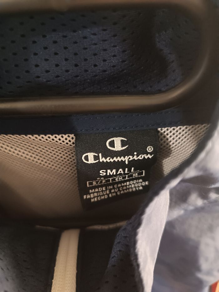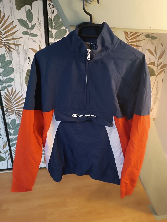Coupe-vent Champion Taille S Rouge, bleu marine et blanc Il y a un accro sur le logo Il y a une poche avant