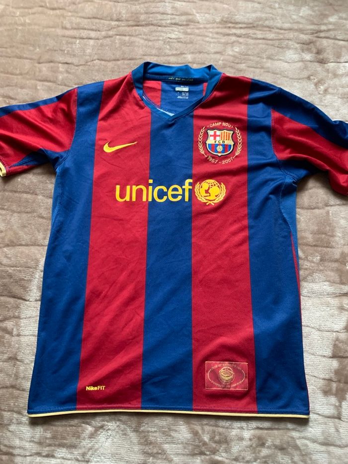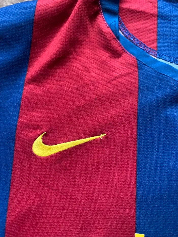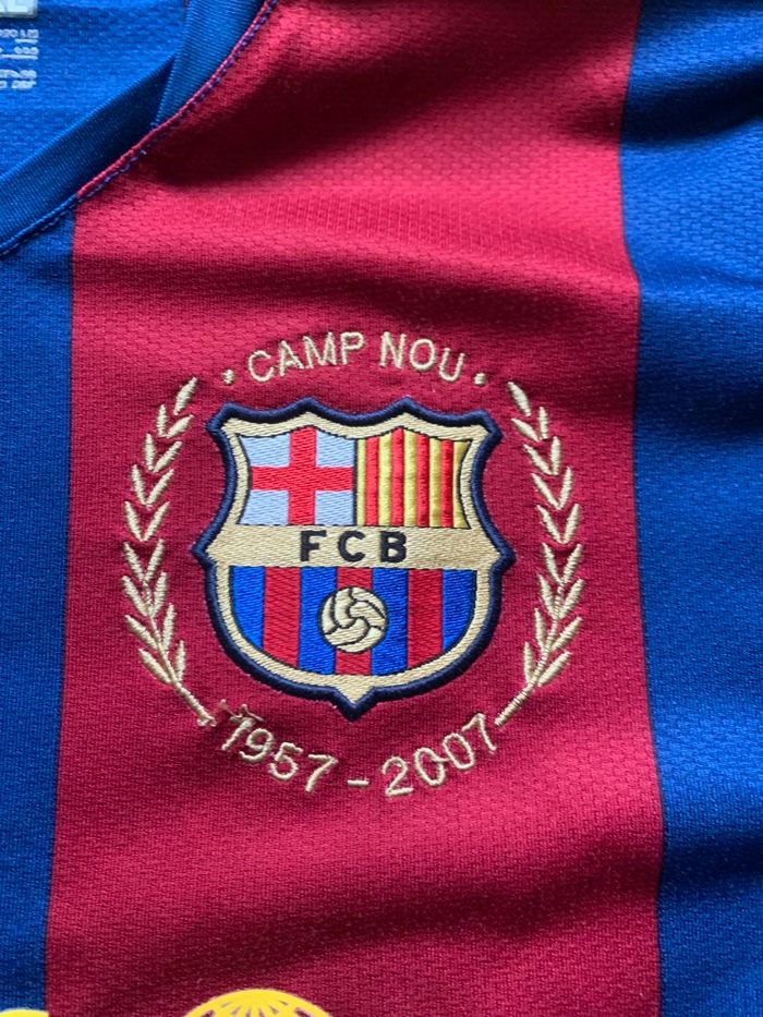 Bonjour Maillot Messi Barcelone ultra vintage année 2007 Taille XS / authentique En très bon état pas de trou a noter Seul des tache sur le flocage sont présent voir photo Sponsor et logos brodé impeccable Envoie rapide et soigné