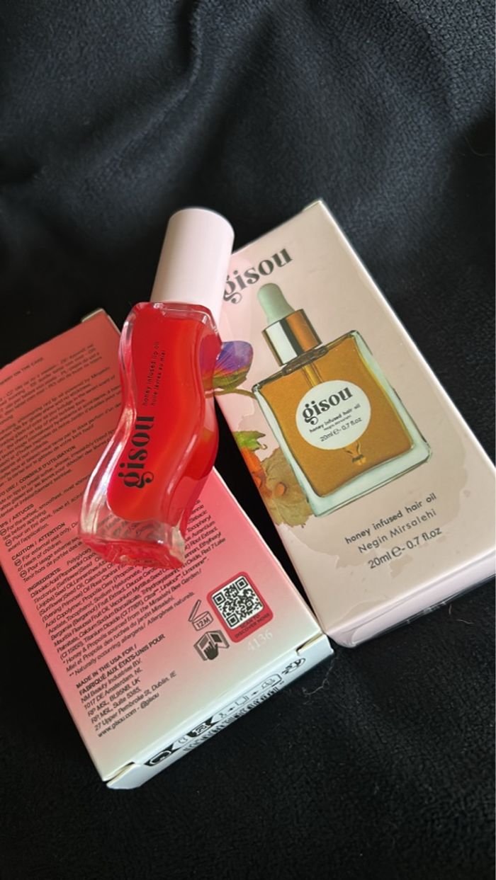 🍓 Honey Infused Lip Oil (teinte rouge fruitée) 8ml 🍯 Honey Infused Hair Oil 20ml Hydrate, nourrit et apporte une brillance naturelle incroyable ✨ Parfum doux au miel – effet glossy & cheveux soyeux Produits en excellent état / quasi neufs Envoi rapide 📦 #gisou #honeynectar #lipoil #hairglow #beautyaddict