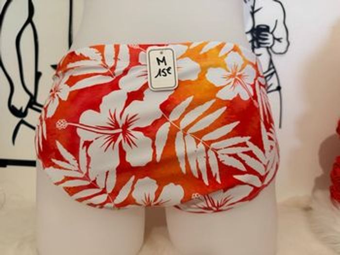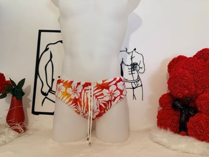 Slip de bain homme motif tropical très estival, parfait pour la plage, la piscine ou les vacances ☀️ 🔹 Taille : M 🔹 Couleurs : Orange, rouge et blanc (motif fleurs hawaïennes) 🔹 Matière : 82% Polyamide / 18% Élasthanne 🔹 État : Neuf 📏 Mesures à plat de la ceinture env. 38 cm 💰 Prix : 15 € Envoi rapide