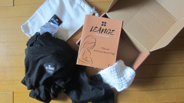 Echarpe sans noeud noire (anneaux pour permettre les règlages) avec ceinture qui permet aussi de ranger l écharpe Sac de rangement Mini lange blanc Livret d'explication Léange L'art du bébé Une écharpe de portage facile à enfiler, porte bebe naissance jusqu'a 10 kg - unisex - sans noeud, pratique, réglable, unisex - Porte-bébé - Entreprise Française - NF ISO 2859-1.