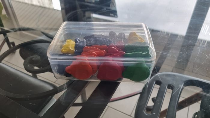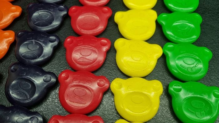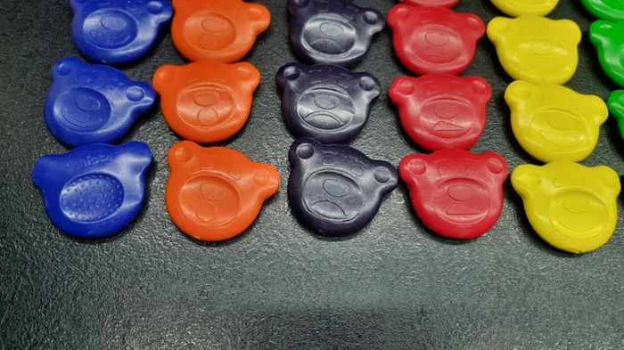 Crayon gras pour tout petit, excellente état de la marque Carioca. Il y a 6 unités de chaque couleurs : rouge, vert, bleu, jaune, violet et de forme de tête d'ourson exprimant différentes émotions.