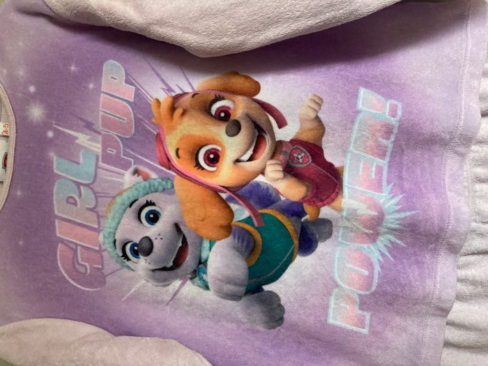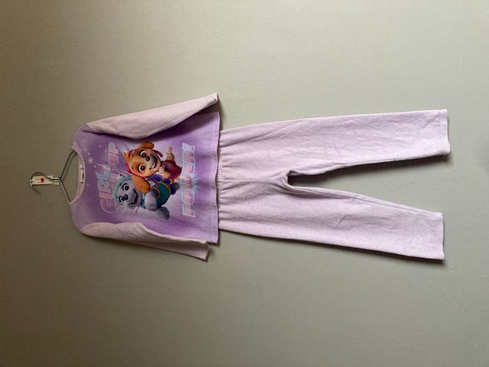 Pyjama deux pièces pour fille (haut à manches longues + pantalon) à l’effigie de Pat' Patrouille. * Motif : Stella et Everest avec l’inscription « Girl Pup Power! » 💖 * Taille : 4-5 ans. * Matière : aspect polaire / pelucheux, très doux et bien chaud, idéal pour l’hiver ❄️ * Marque / licence : licence officielle Nickelodeon / Spin Master. * État : très bon état, matière encore très douce. Parfait pour les nuits d’hiver ou comme idée cadeau pour une fan de la Pat’ Patrouille 🐾 #Worryfree_4ans