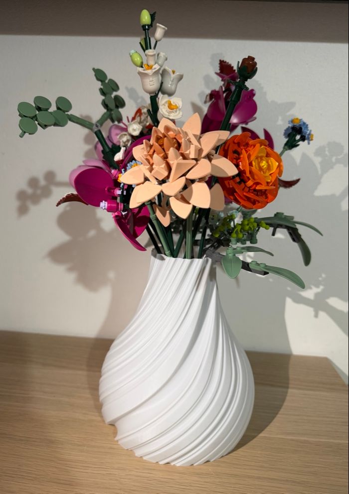 Vase fait en PLA impression 3D Vase fin idéal pour fleurs lego botanicals ou fleurs séchées (ne pas mettre d'eau, non étanche) ⚠️⚠️⚠️ les fleurs ne sont pas inclus, l'annonce est uniquement pour le vase Dimensions: hauteur 18cm Diametre haut: environ 6cm Diamètre bas: environ 15cm Blanc 5€ Noir 5€ Autre couleurs sur demande 6€ (33) Envoi soigné