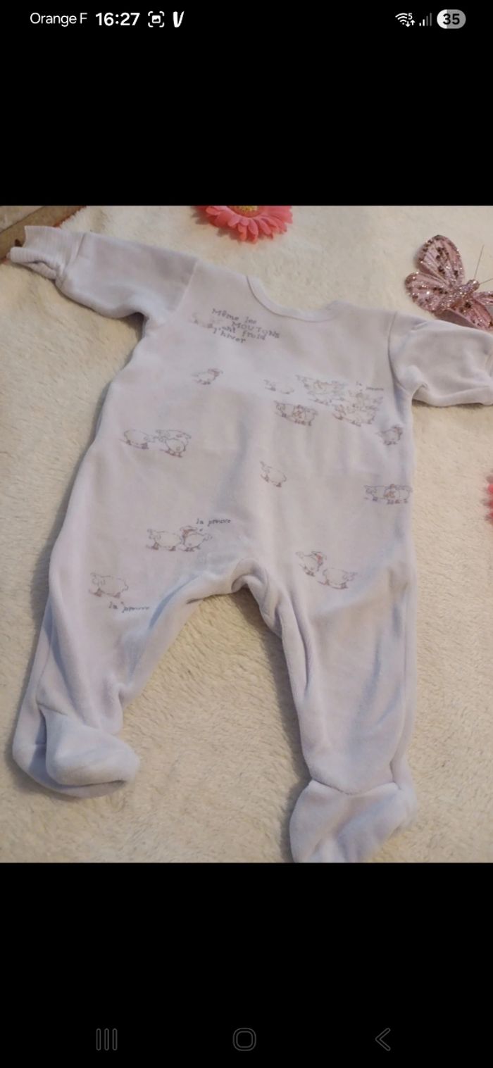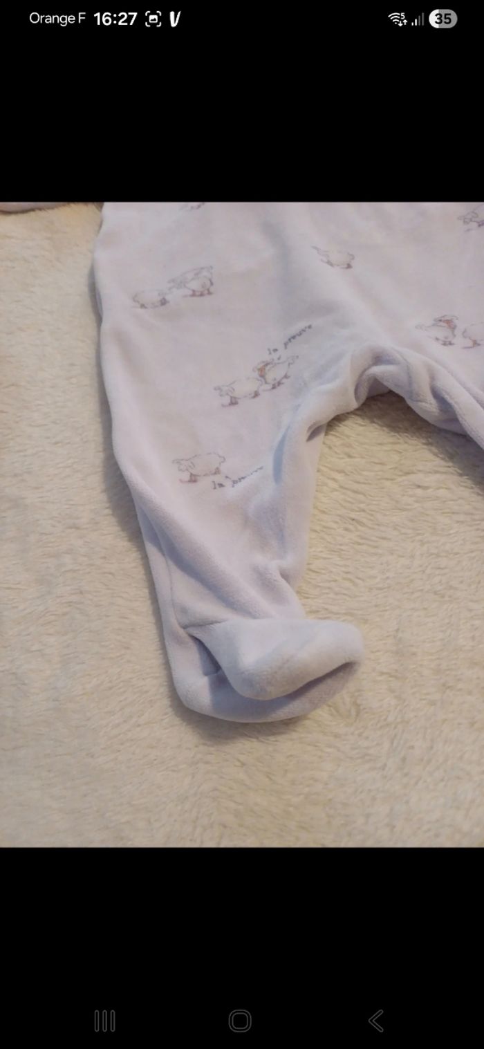 Pyjama en velours avec pieds. Fermeture par pressions à l arrière.