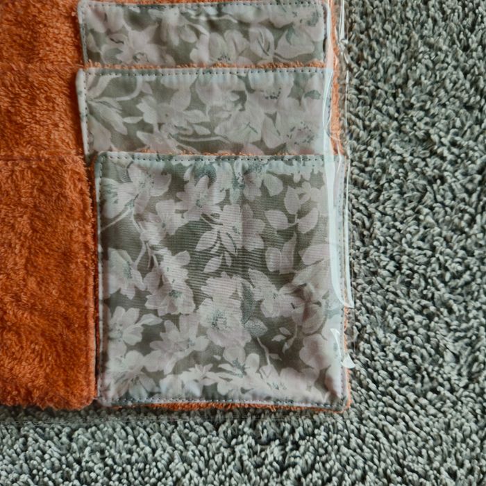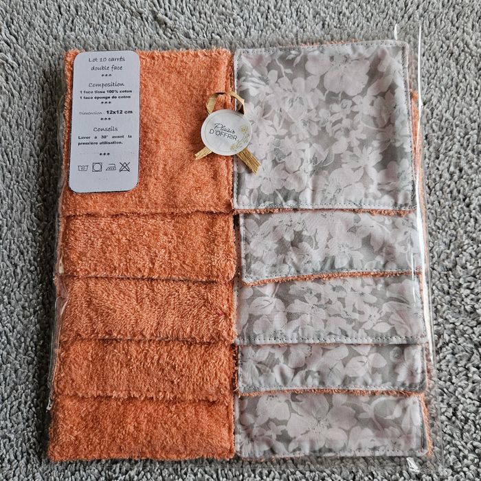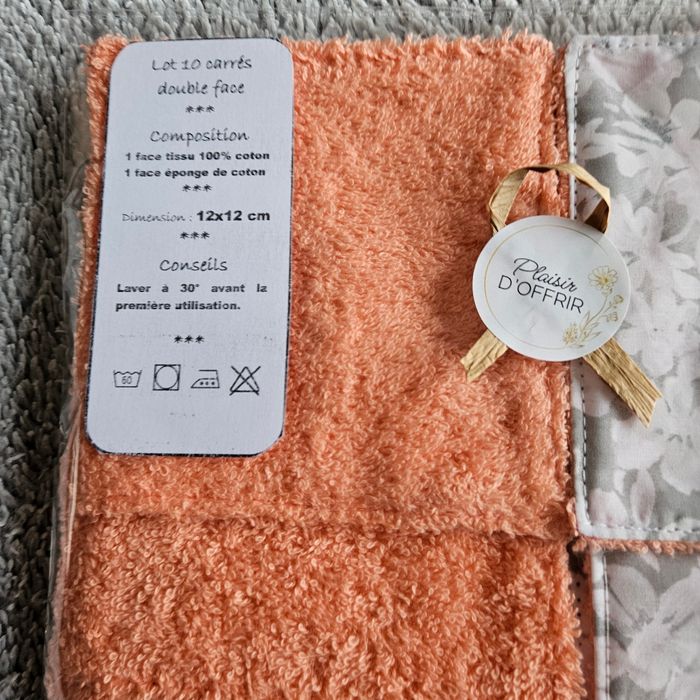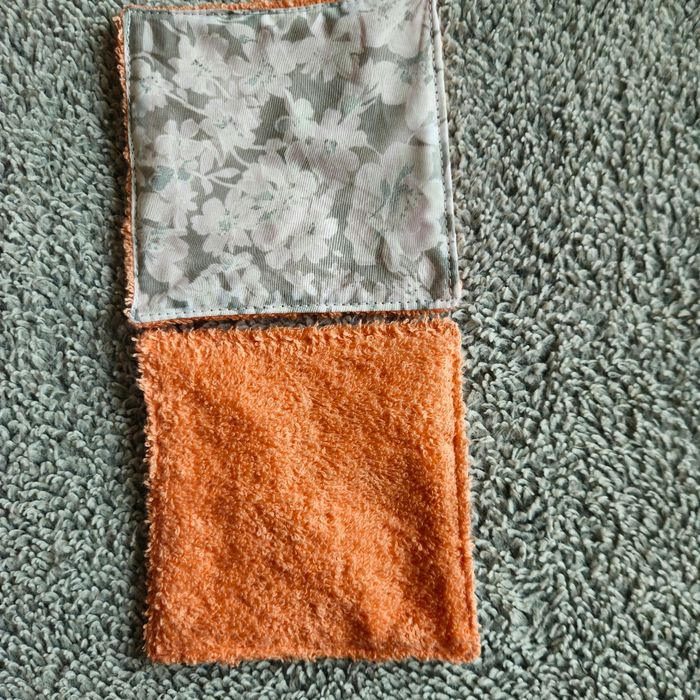 Lot 10 lingettes double face un côté tissu 100%coton motif fleuri et un côté éponge de coton corail lavables jusqu'à 60 degrés Taille 12x12 cm Neufs jamais utilisés Achetez en lots réduction automatique à partir de 3 articles