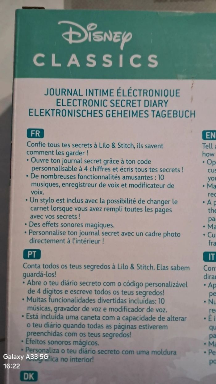 Journal intime électronique Stitch pour confier tous tes secrets, stylo et cahier inclus, enregistreur de voix, effets sonores... pour les enfants dès 6 ans, Disney Classique, Lexibook, état neuf dans son emballage carton