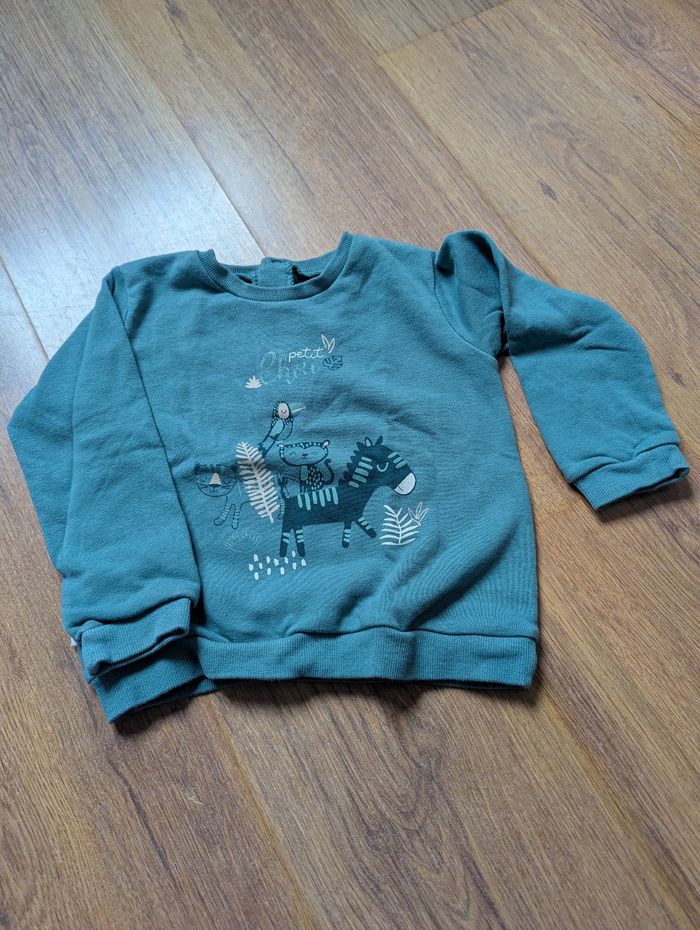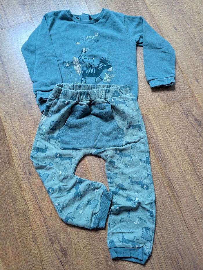 Très bel ensemble molletonné petit béguin comprenant : - un pantalon type sarouel avec poche ventrale, - un sweat shirt boutonné dans le dos