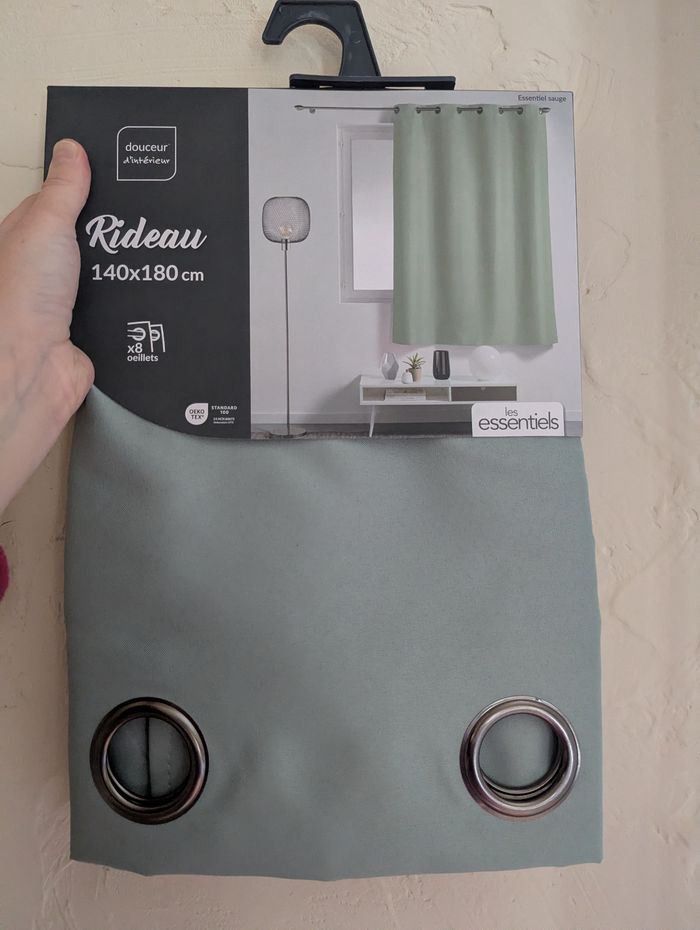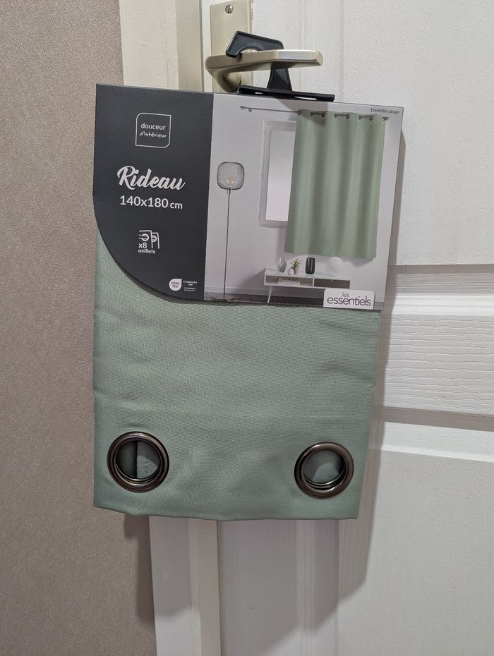Rideau à oeillets neuf. 140x180cm. Vert sauge.