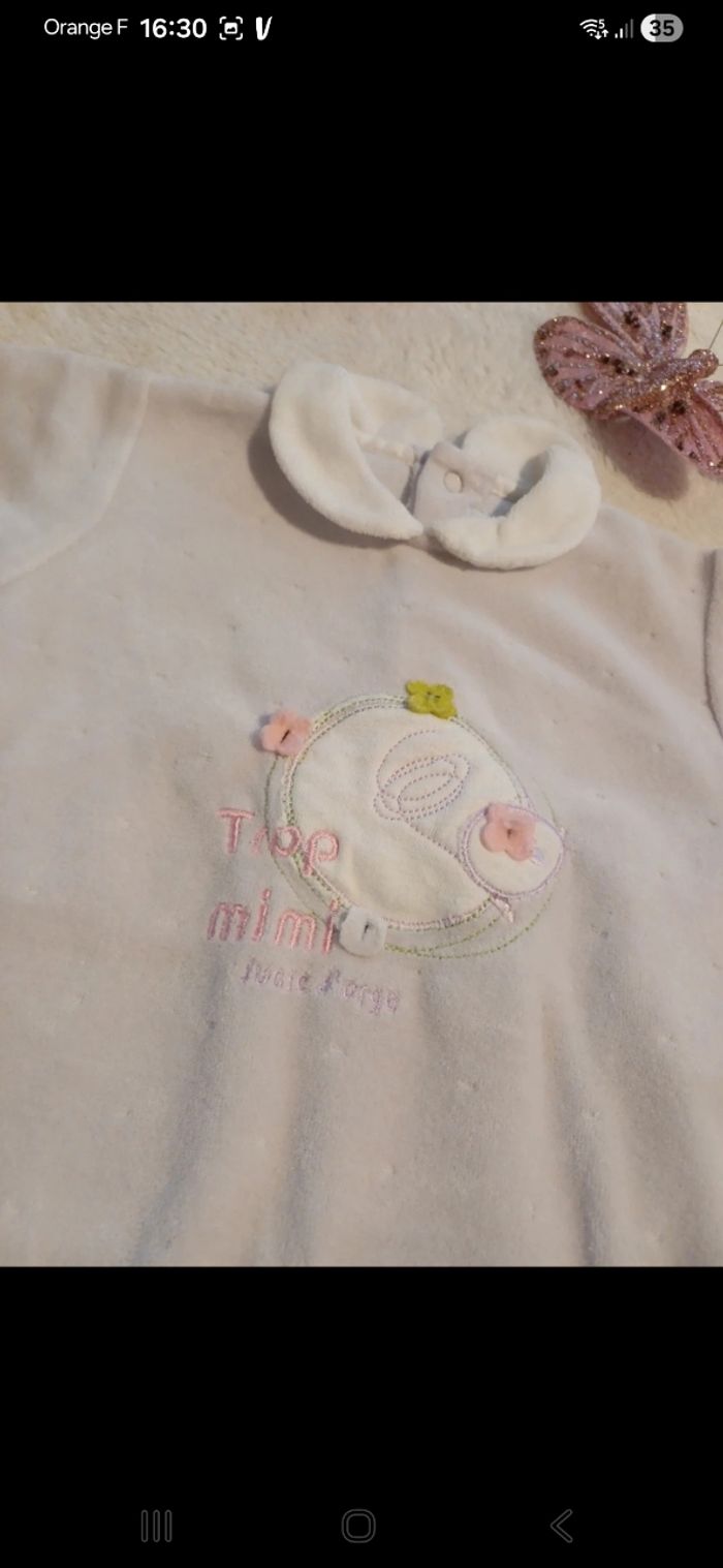 Pyjama en velours avec pieds. Fermeture par pressions à l arrière