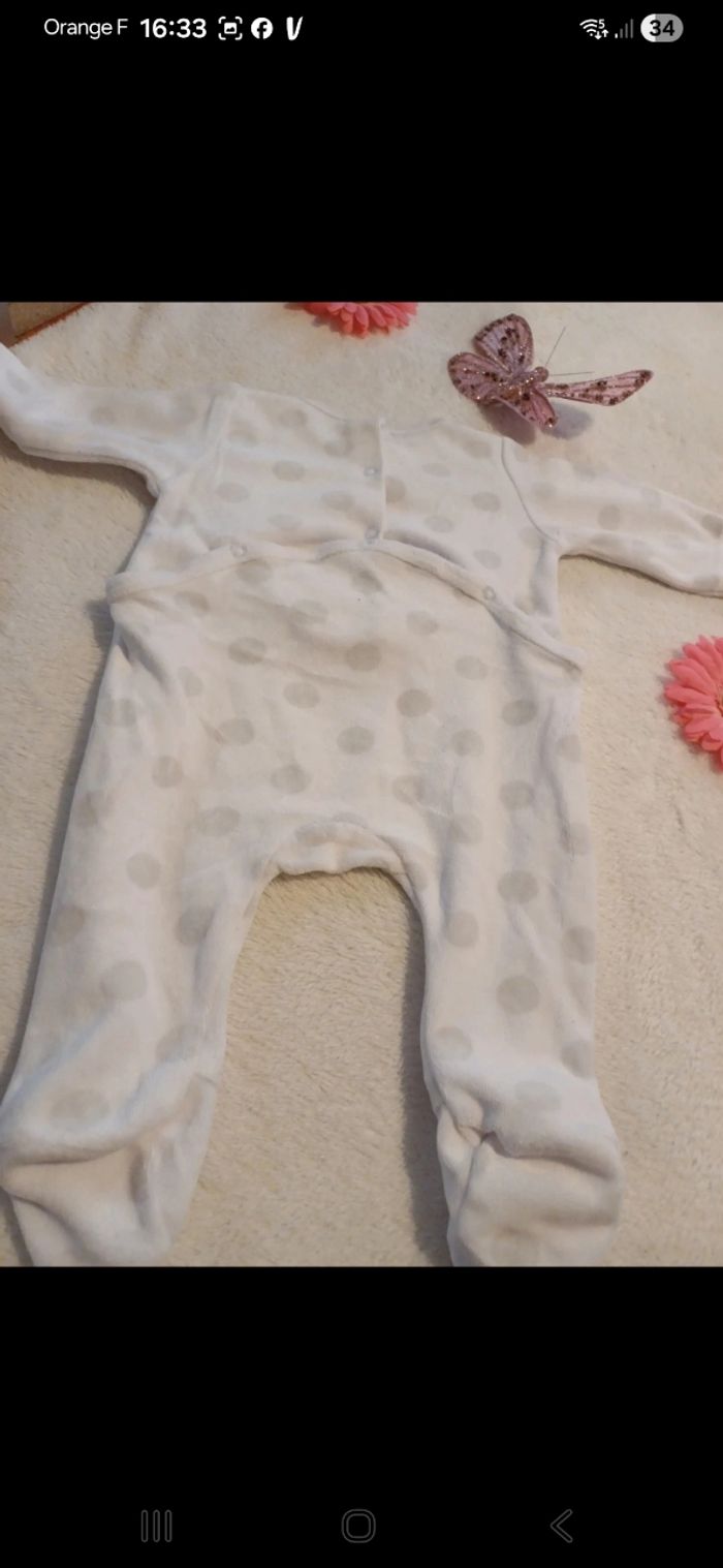 Pyjama en velours avec pieds. Fermeture par pressions à l arrière