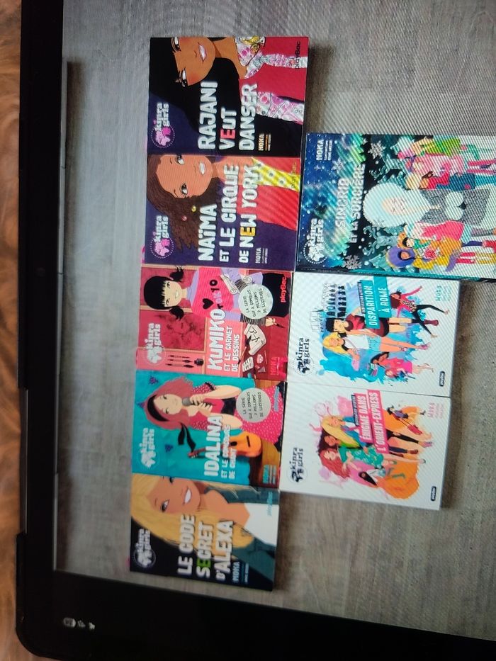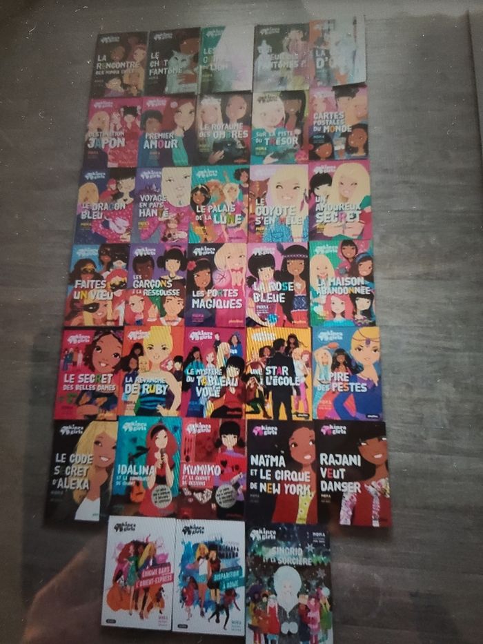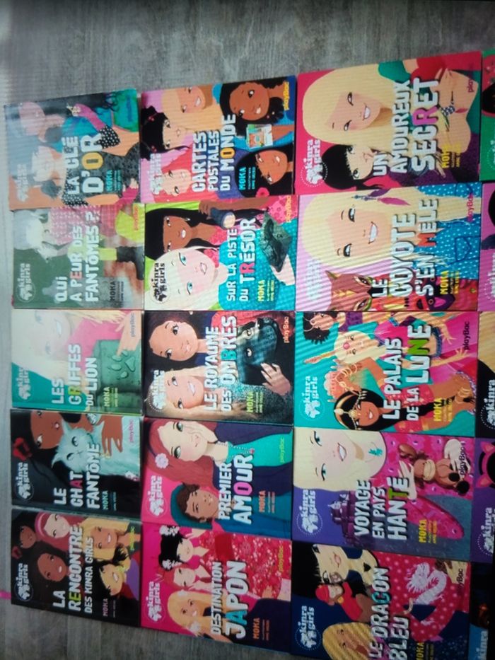 Lots de 33 livres kinra girls du tome 1au 25 . Plus 5 tomes spéciaux sur les héroïnes. Ainsi que 2 tomes destinations mystères et pour finir un formats plus grand . Les livres sont en très bon états lus une fois par ma fille qui les a adorés. Il y a juste le tome 1 ou quelques pages sont scotchée.