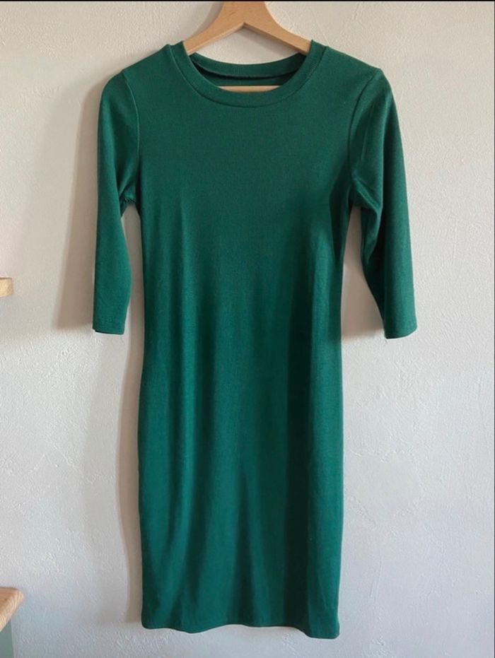 Robe avec manches 3/4 Taille M En très bon état #robe #robefemme #robeverte #robemoulante #misaison #robemisaison #robelegere #vert #midi